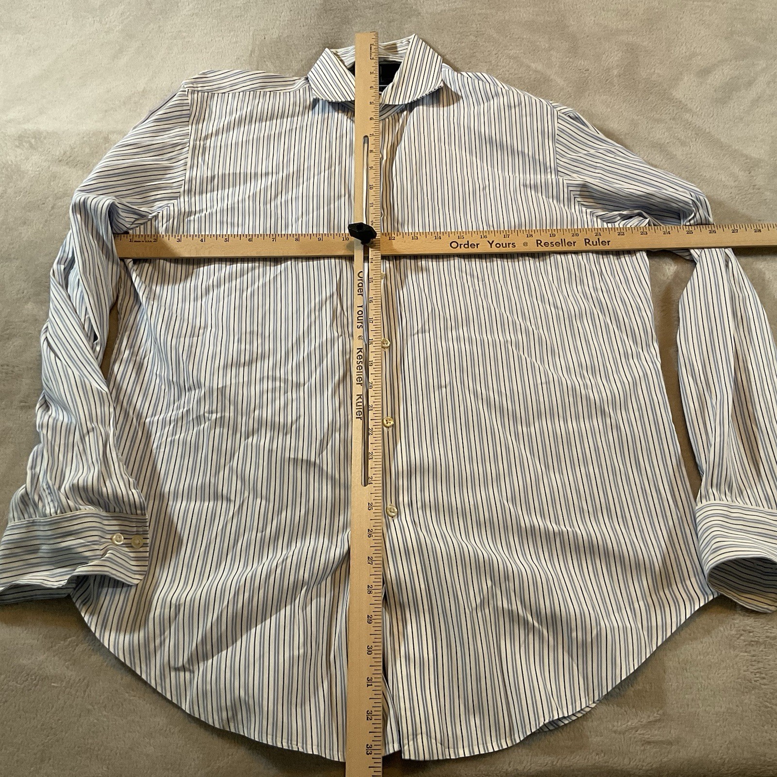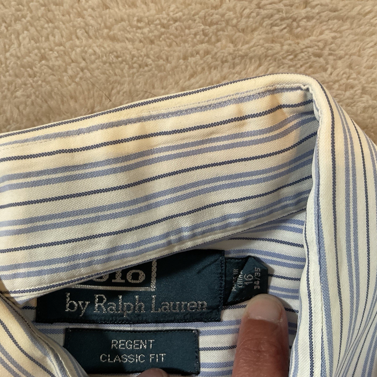 как выглядит Polo Ralph Lauren Regent Classic Fit Long Sleeve Shirt 16 34/35 Striped Flaw фото