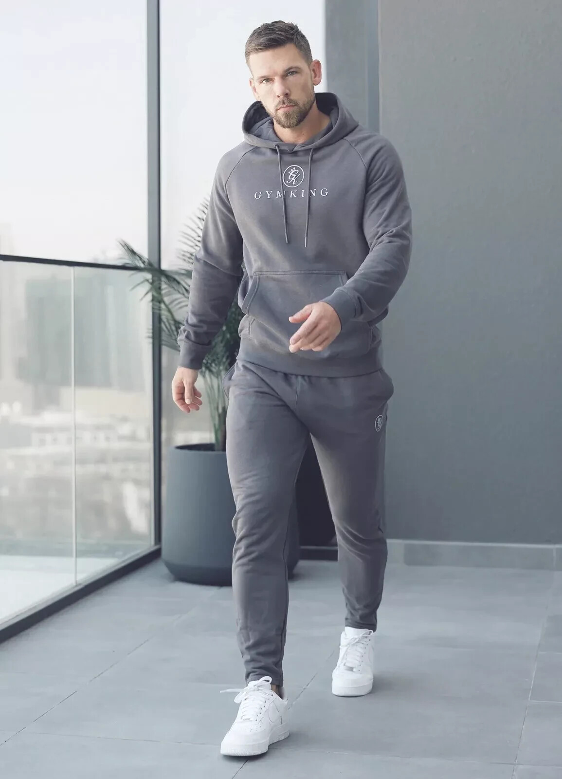 как выглядит Gym King Men Pro Logo Full Tracksuit Designer Hoodie Sweatshirt Joggers Grey XXL фото