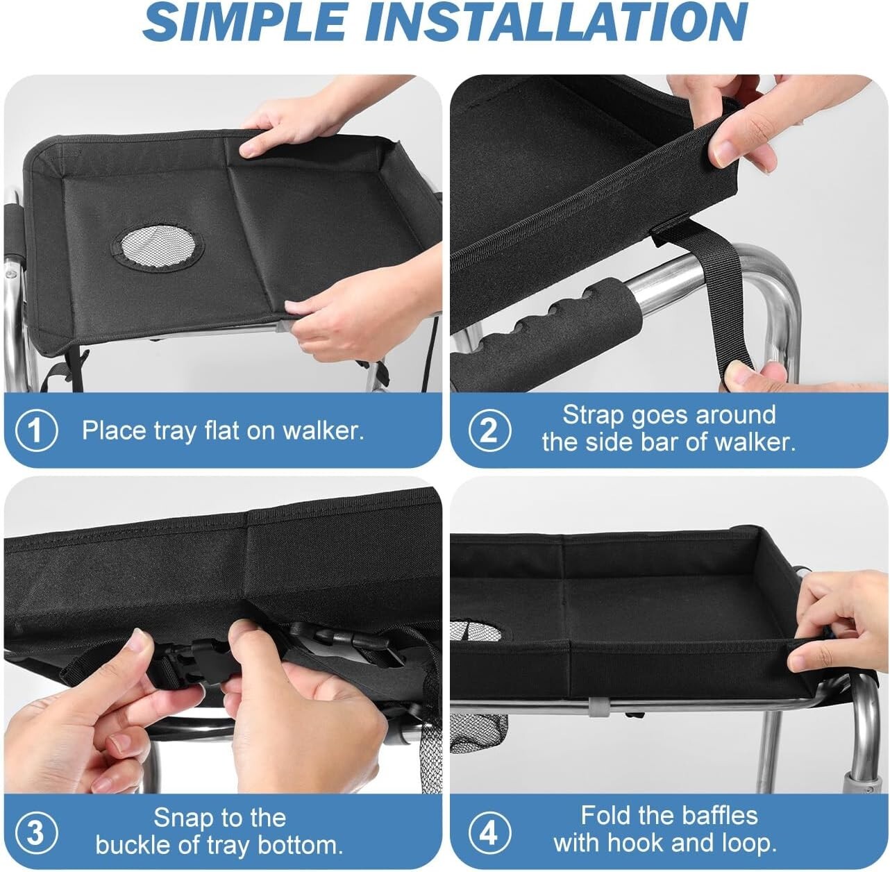 Walker Tray for Folding Walker, Foldable Tray for Walker with Cup Holder, Walker