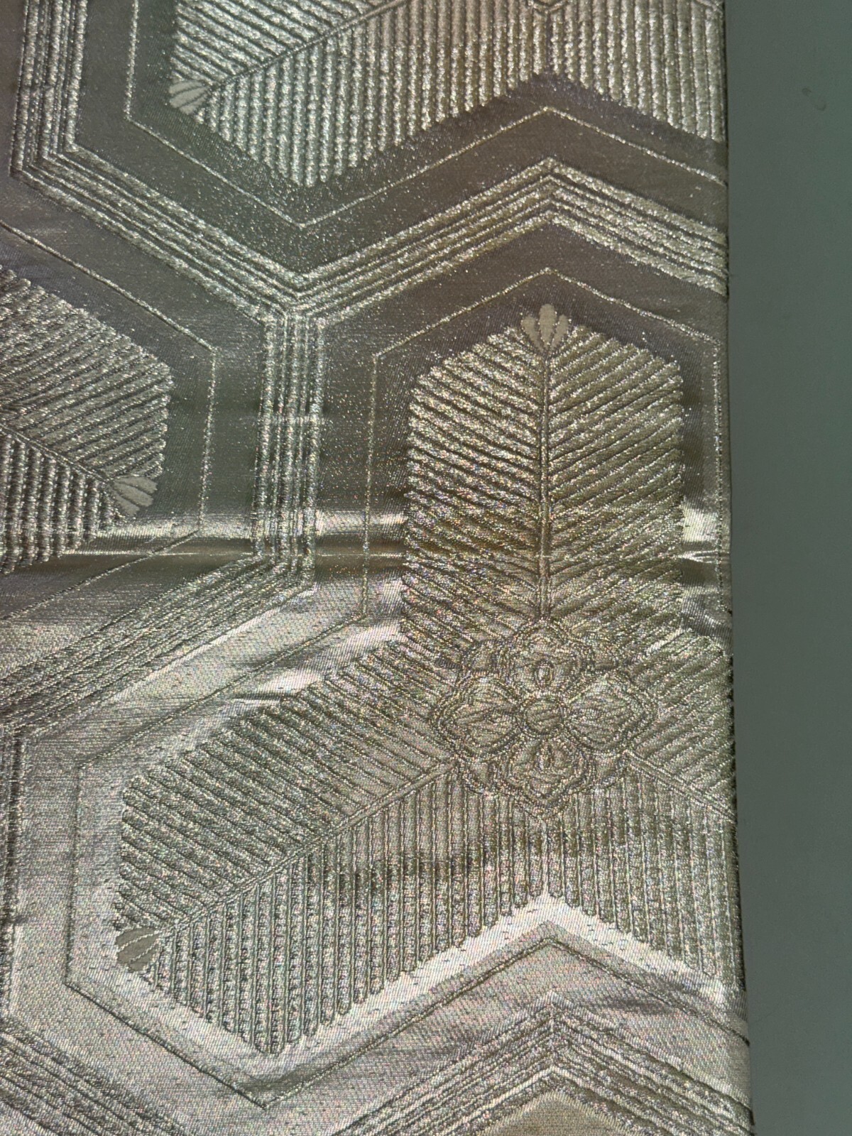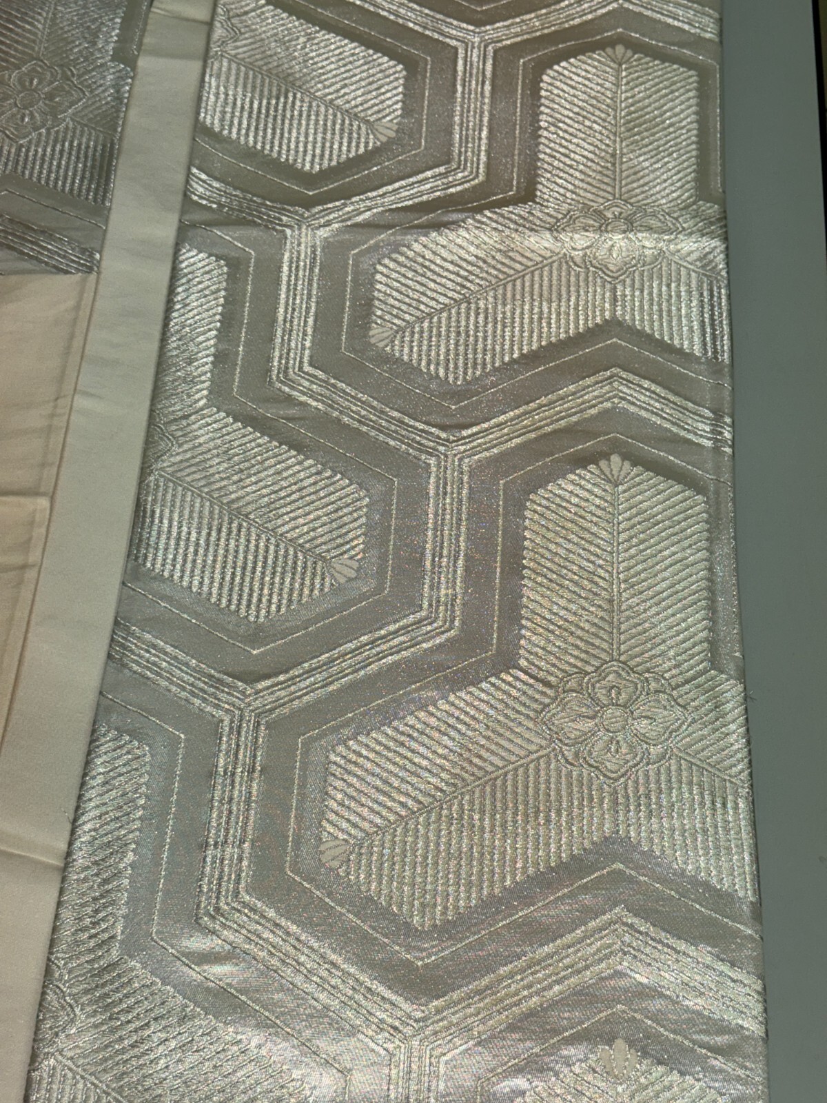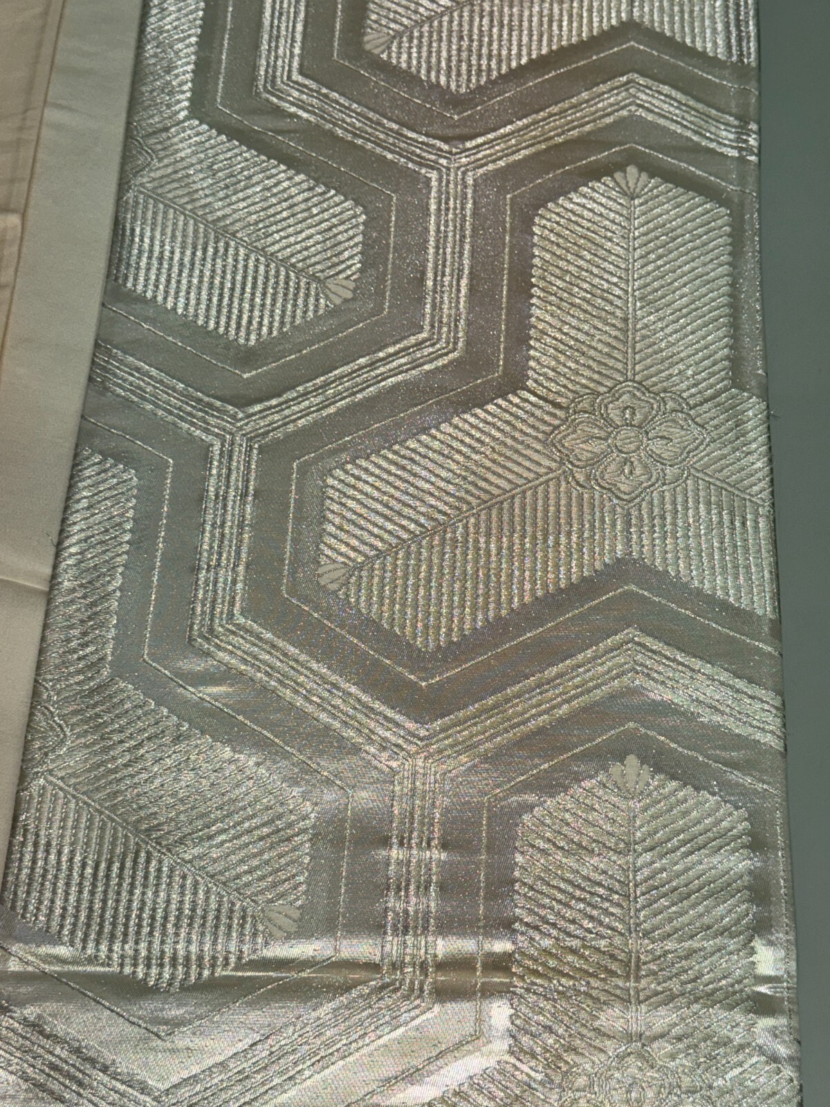 как выглядит Japanese Vintage Kimono Fukuro Obi silk silver expensive embroidery 162.2x11.8in фото