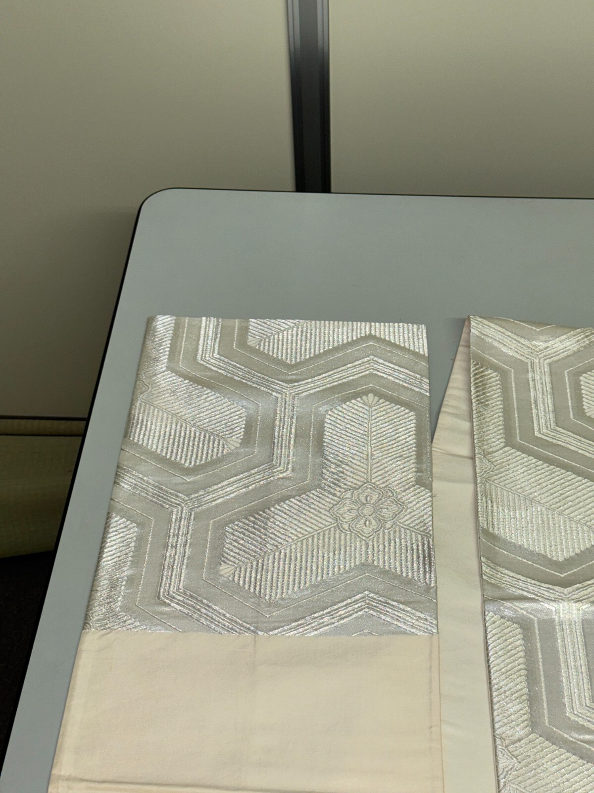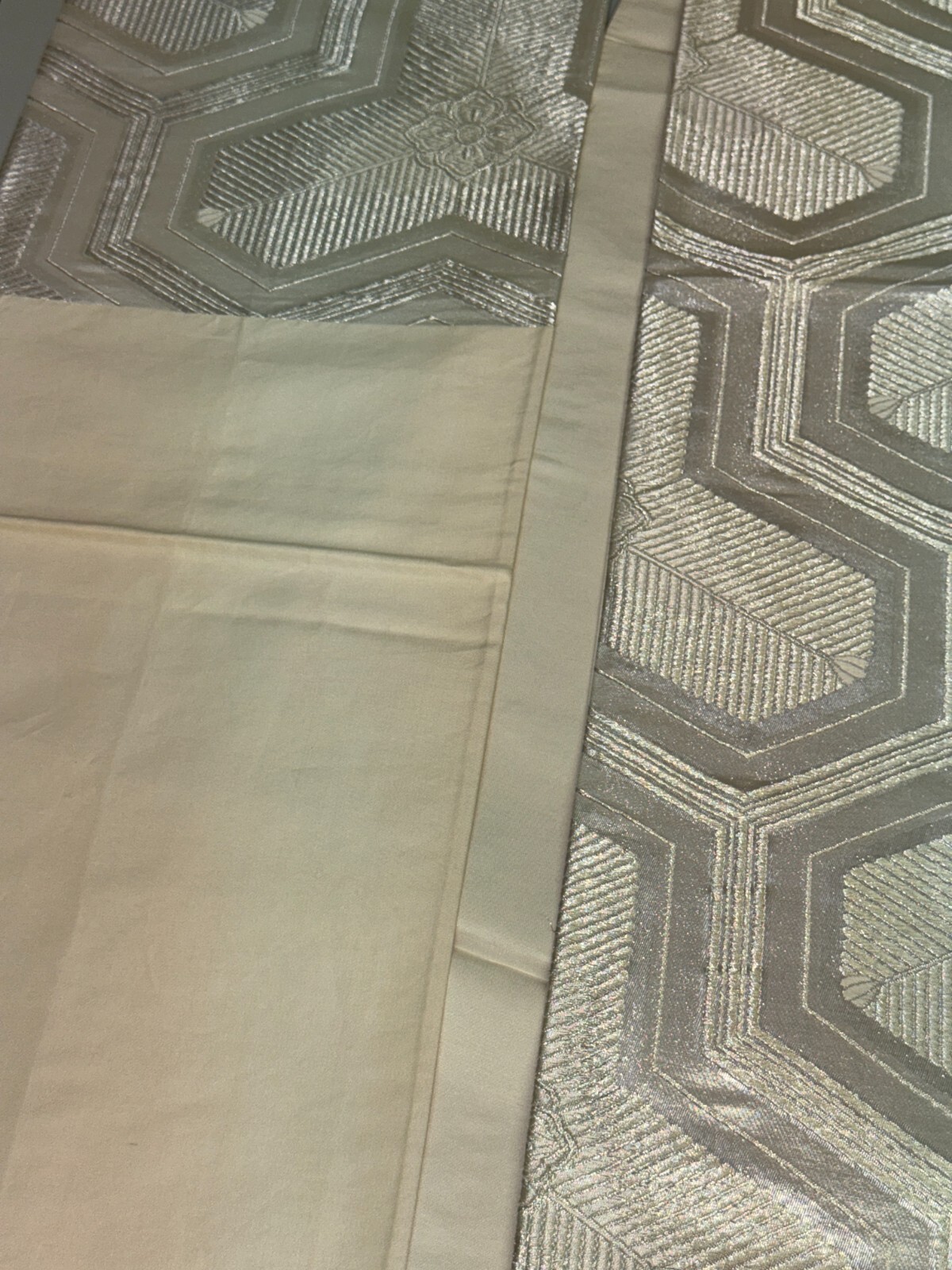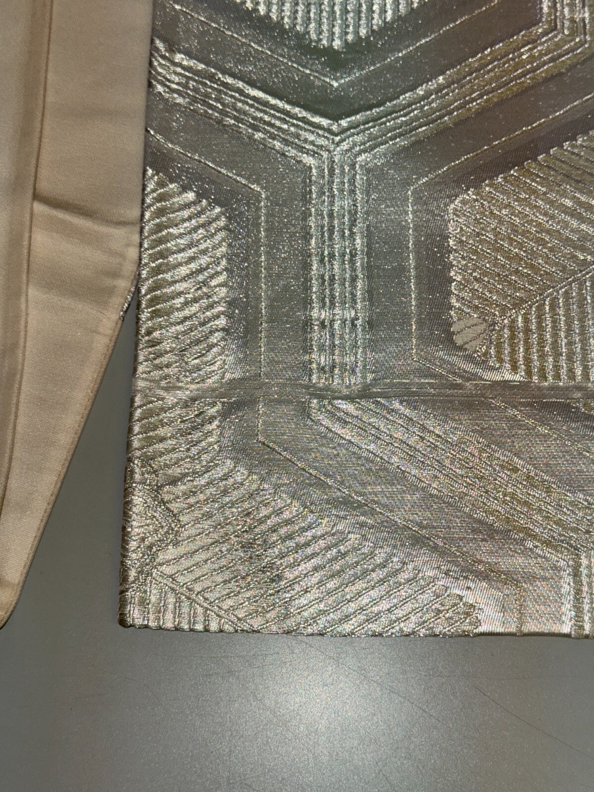 как выглядит Japanese Vintage Kimono Fukuro Obi silk silver expensive embroidery 162.2x11.8in фото