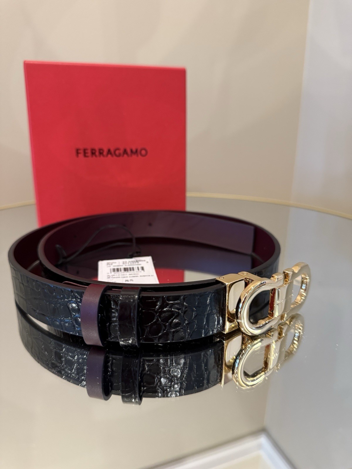NWT Salvatore Ferragamo Leather Black Croc Belt