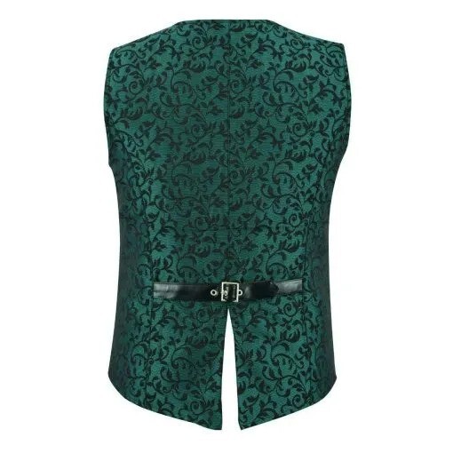 Premium Mens Vest Waistcoat Green Damask Velvet Goth Steampunk Vtg Brocade Vest