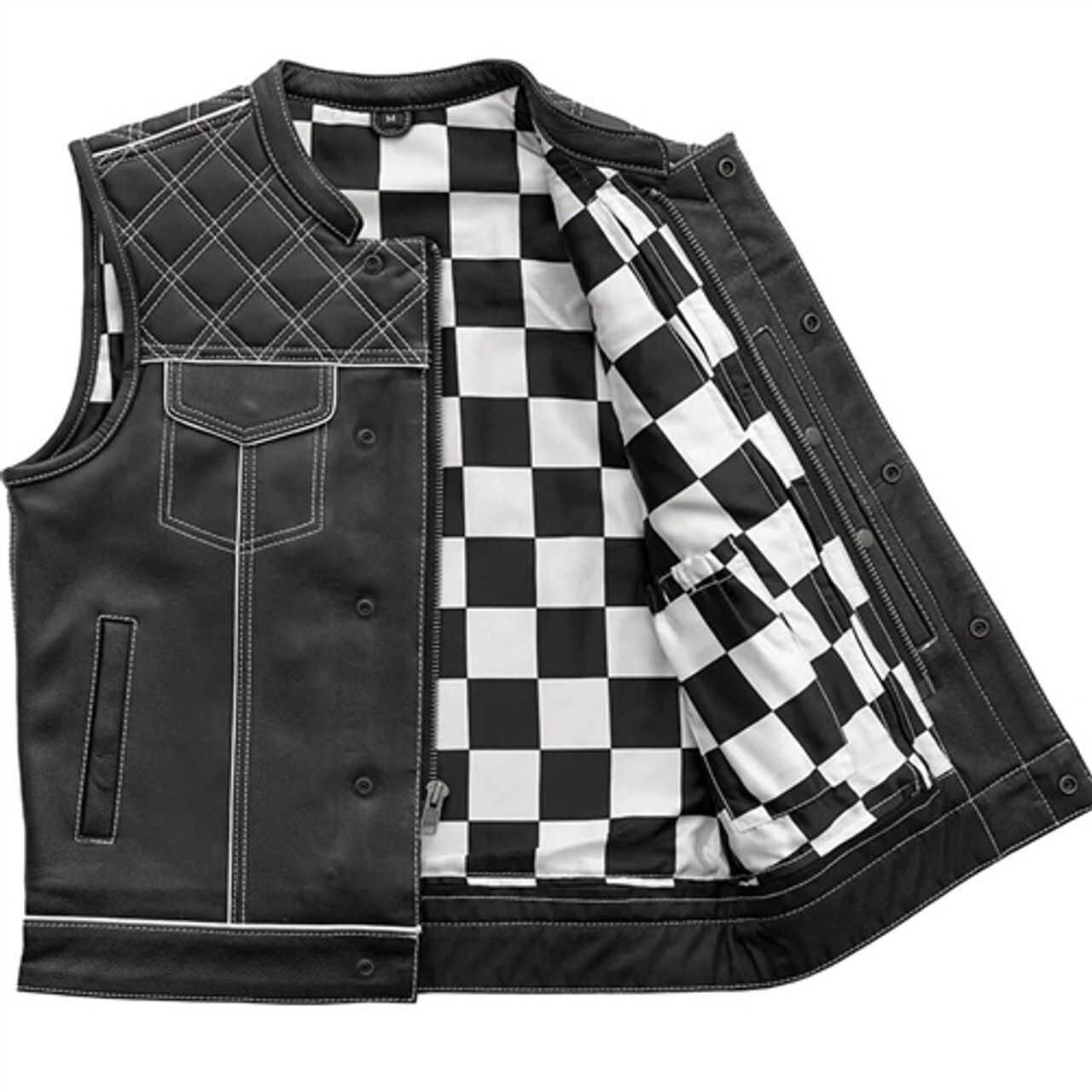 Hunt Club Mens White Stitched Leather Motorcycle Biker Concealed Carry Vest