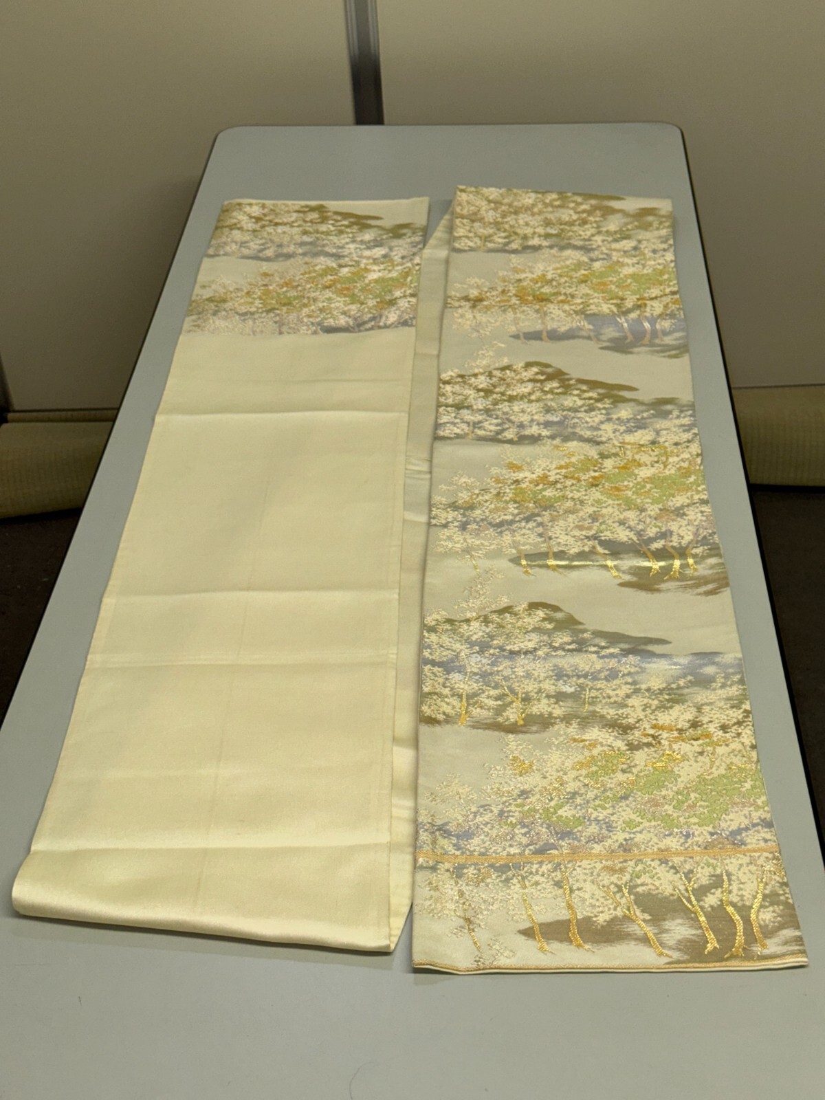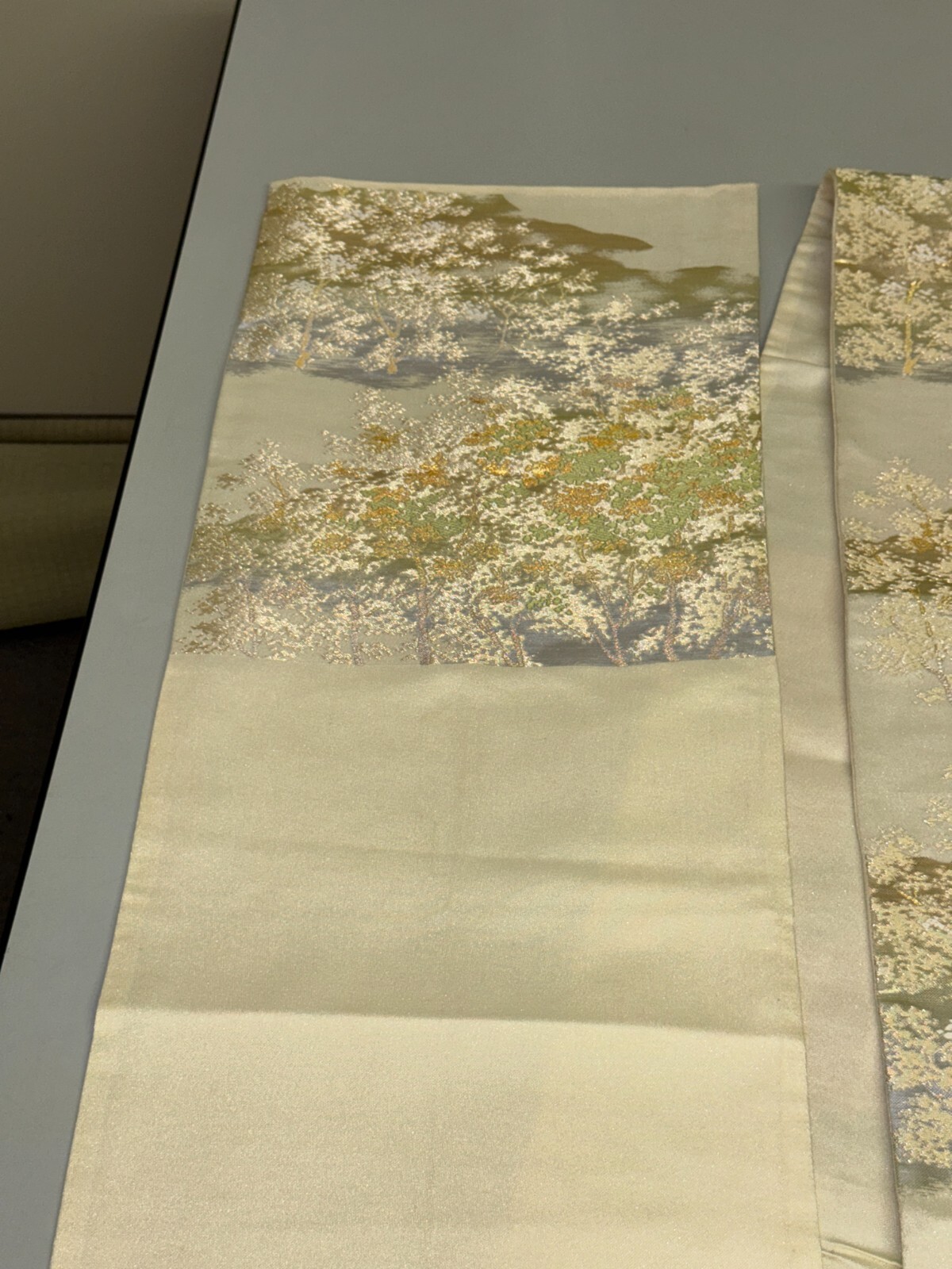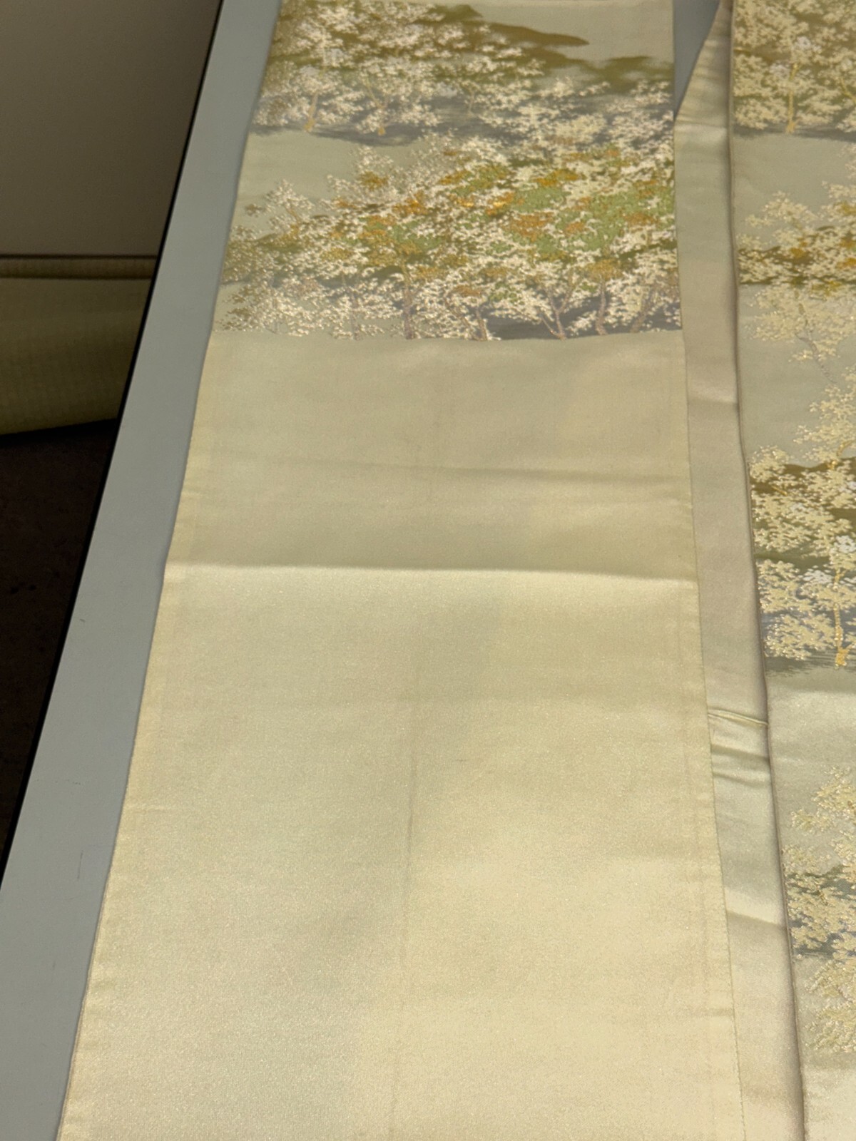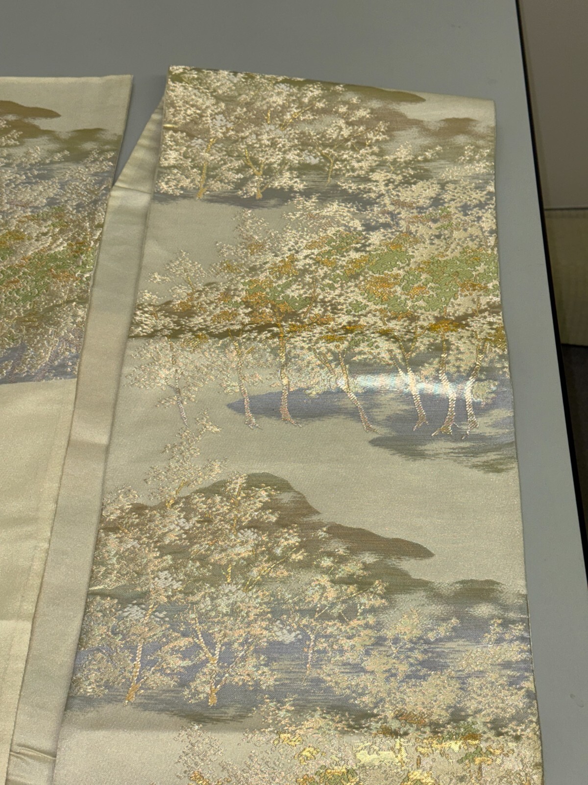 как выглядит Japanese Vintage Kimono Fukuro Obi silk silver expensive embroidery 160.6x11.8in фото