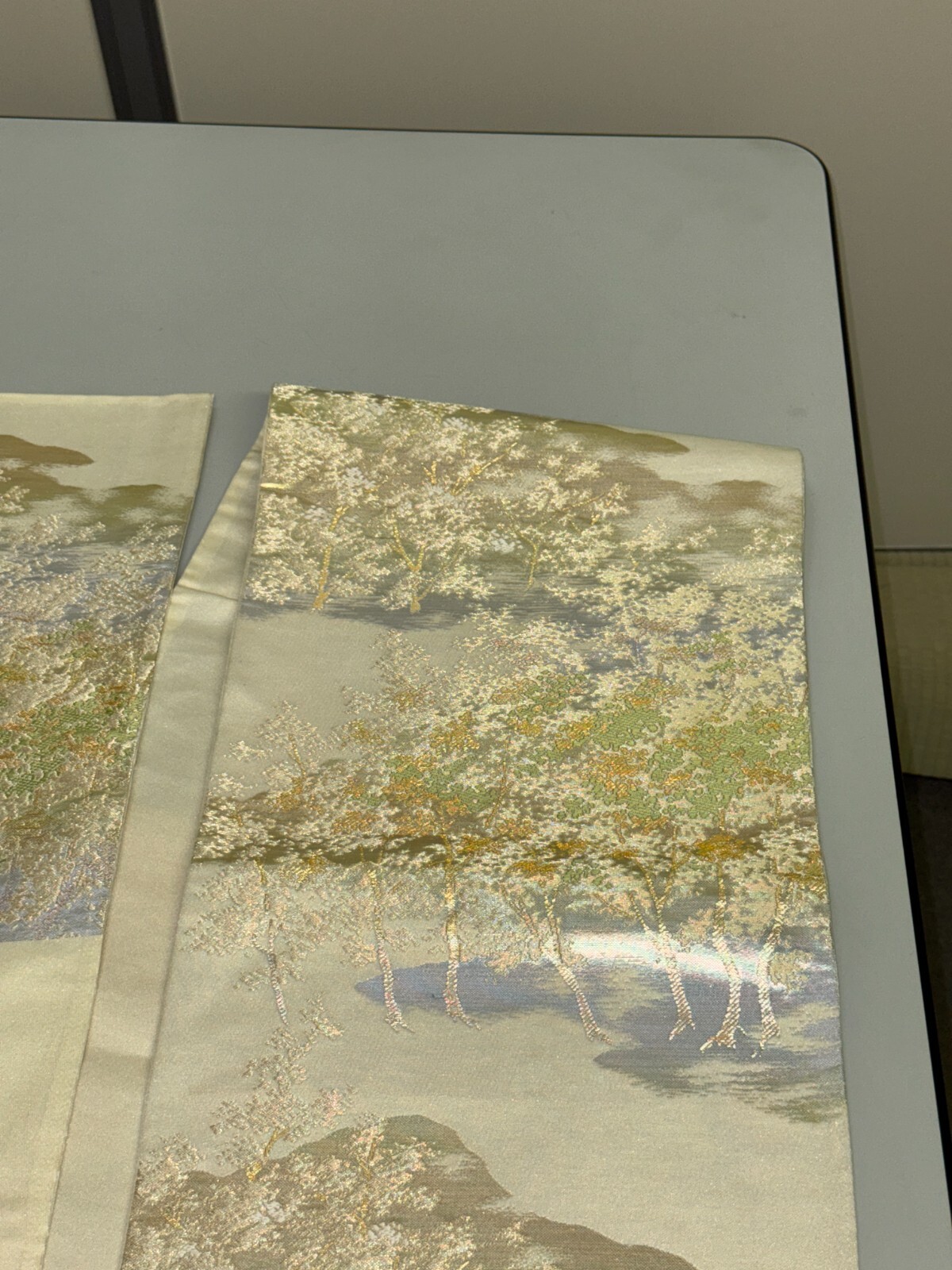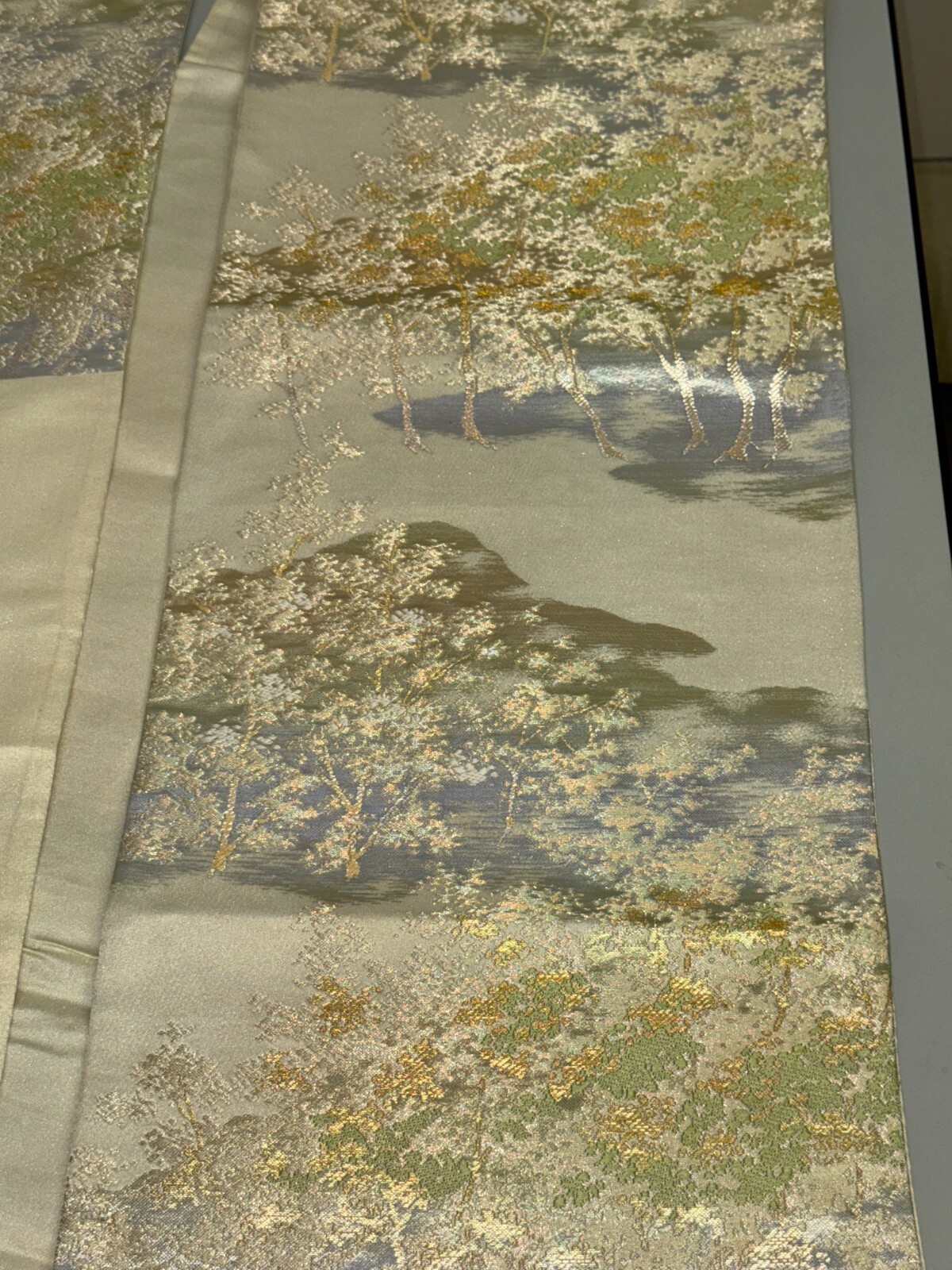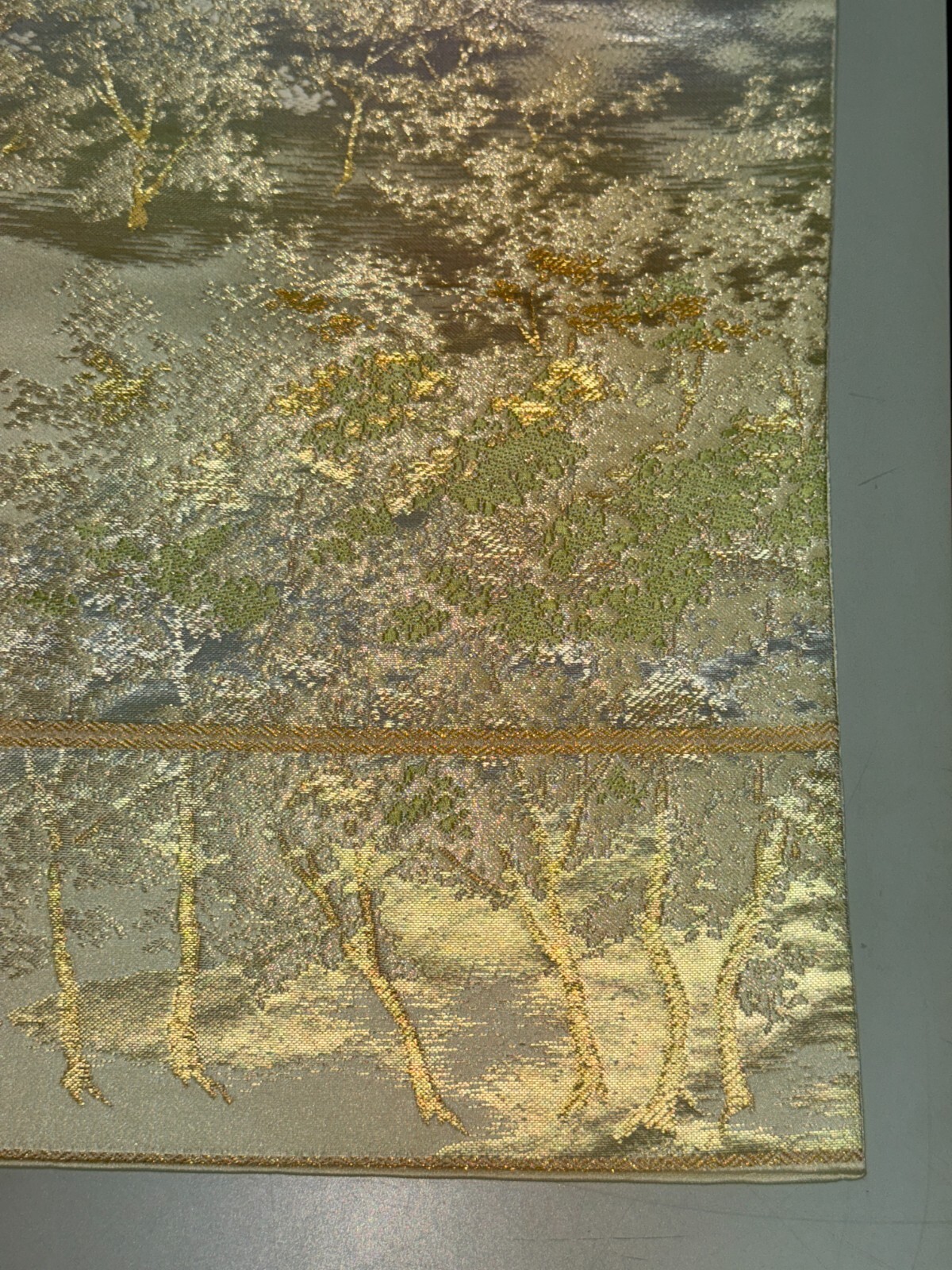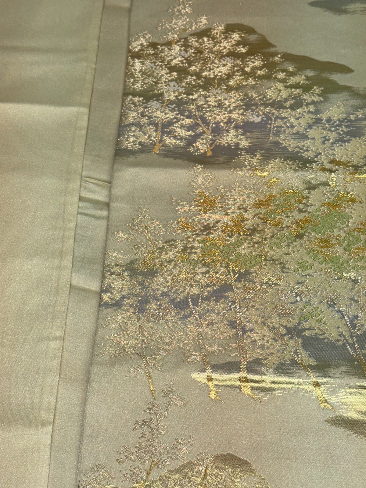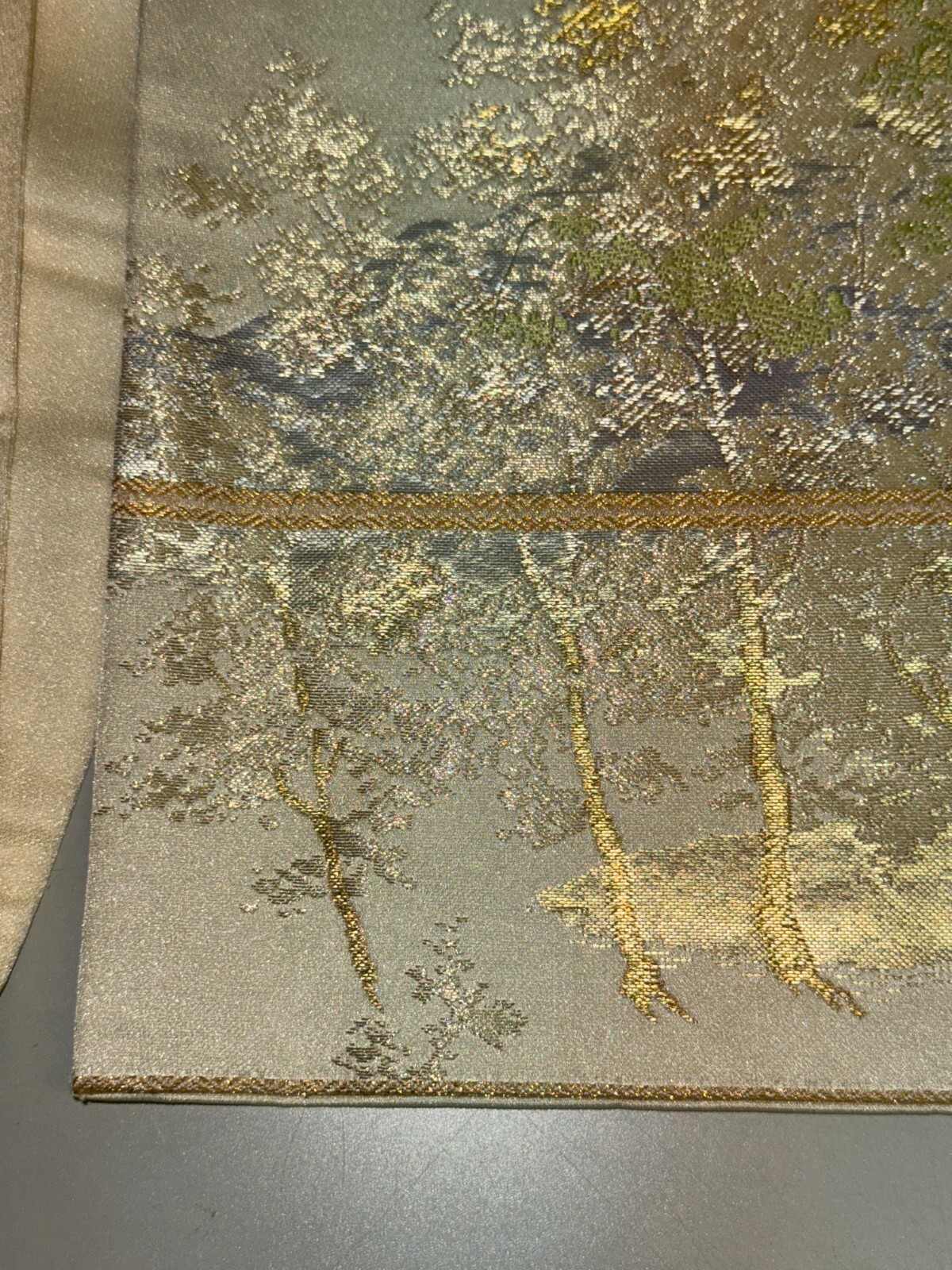 как выглядит Japanese Vintage Kimono Fukuro Obi silk silver expensive embroidery 160.6x11.8in фото