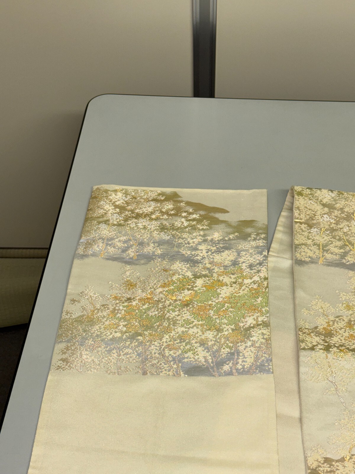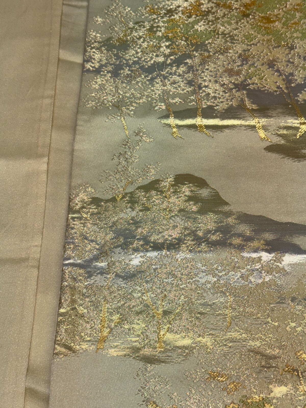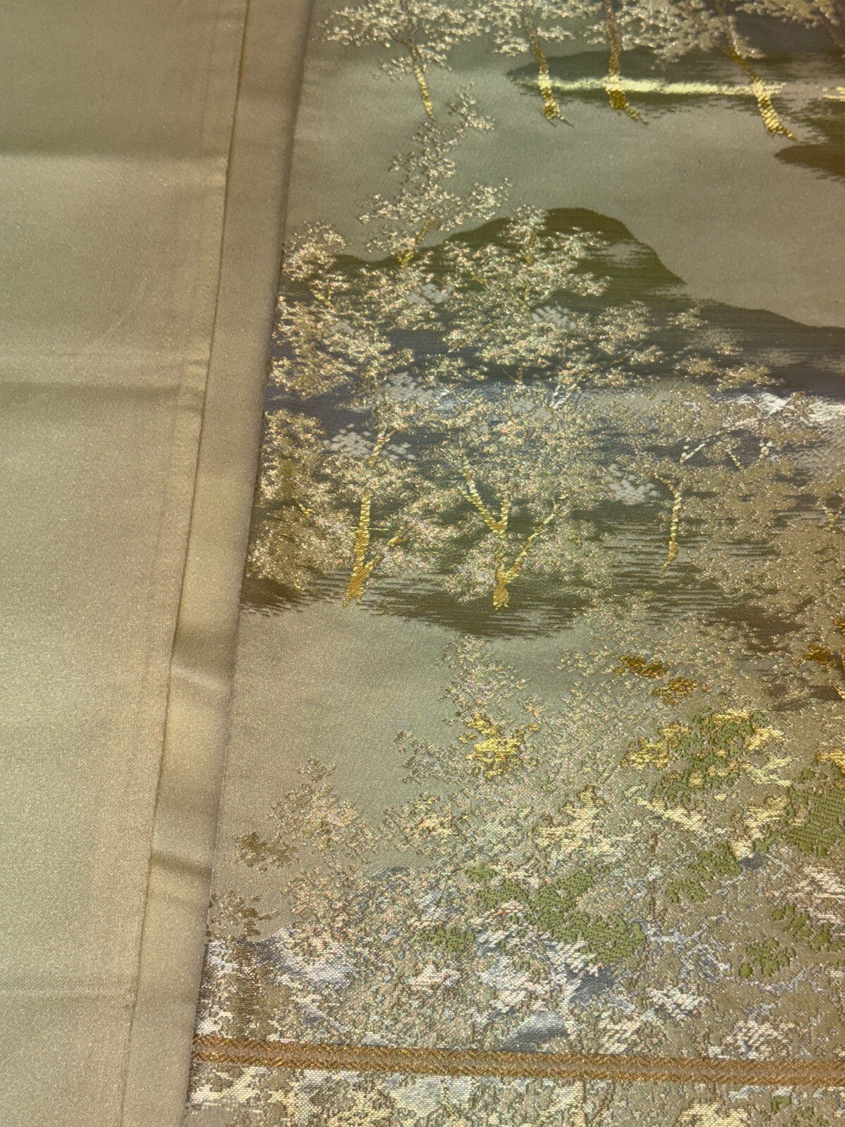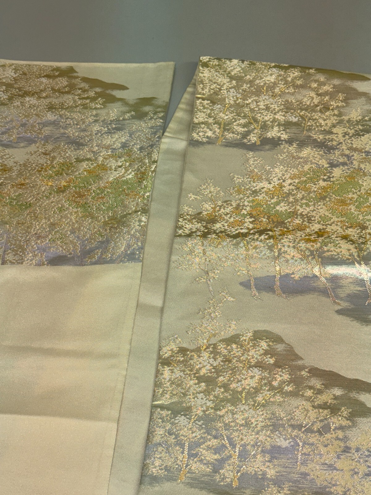 как выглядит Japanese Vintage Kimono Fukuro Obi silk silver expensive embroidery 160.6x11.8in фото