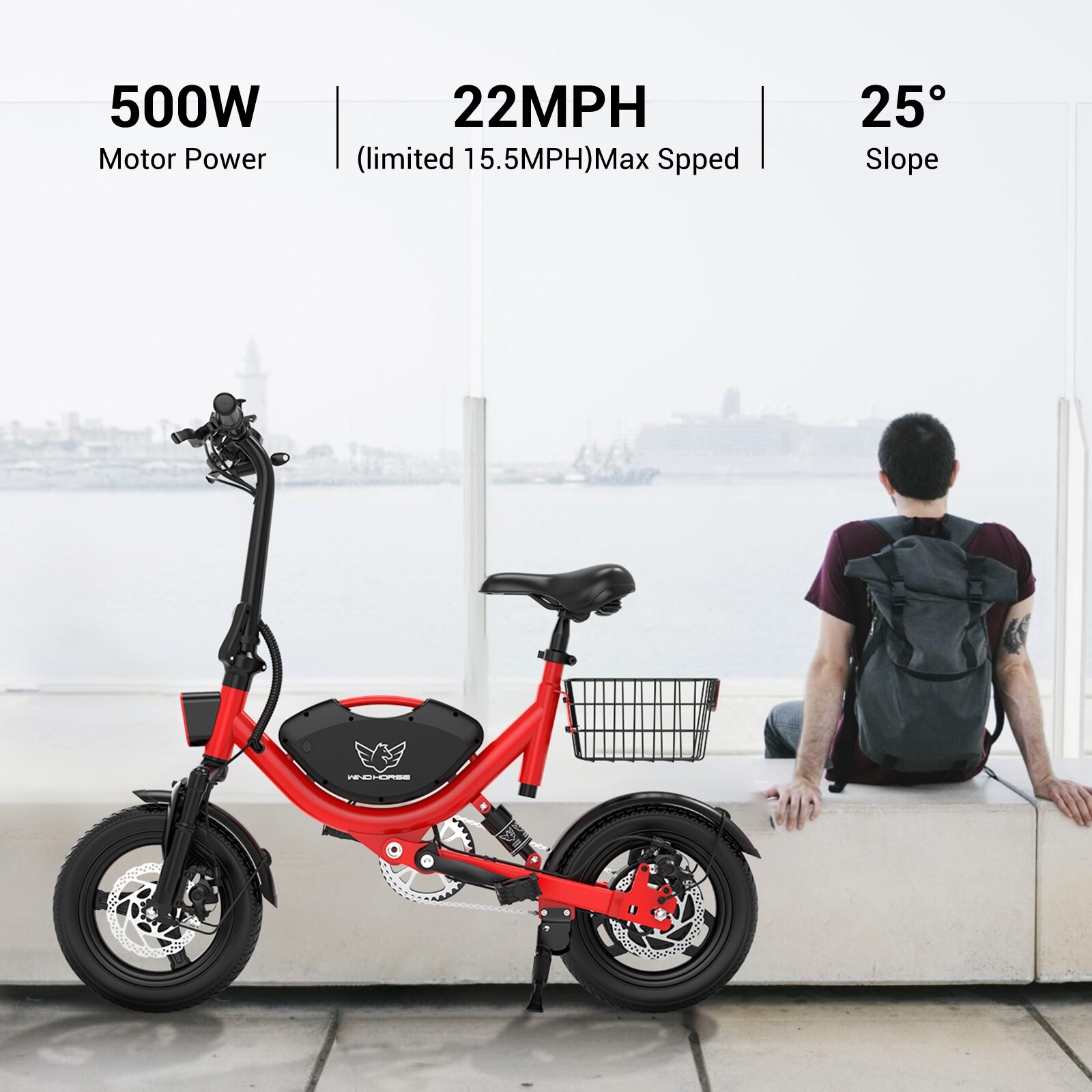 500W Sports Electric Scooter Adult E-Bike Electric Moped Commuter W/Seat Basket