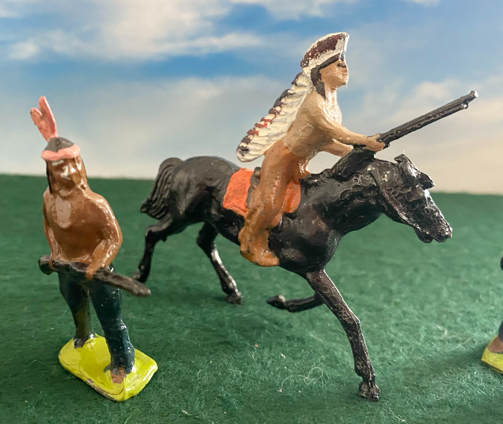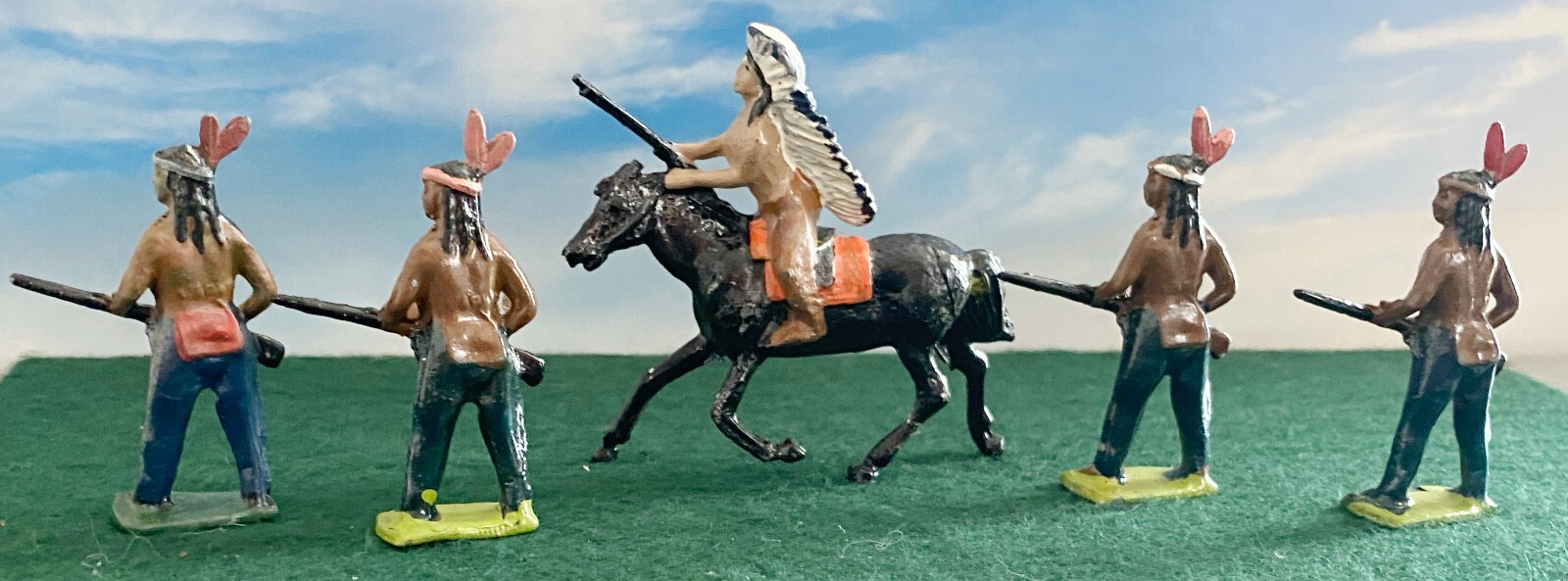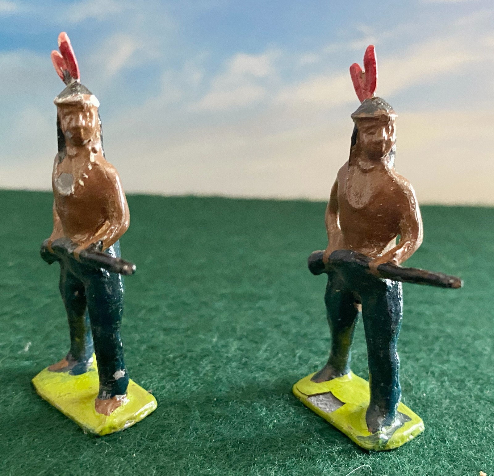 VINTAGE LEAD - NATIVE INDIANS X5 - STANDING MOUNTED - BRITAINS SIZE