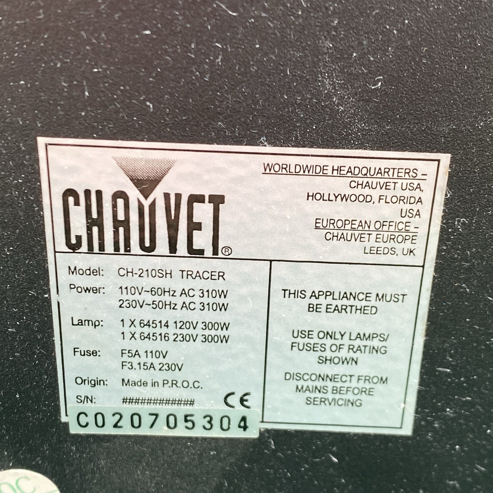 CHAUVET TRACER HEAD DJ EQUIPMENT CH-2106H