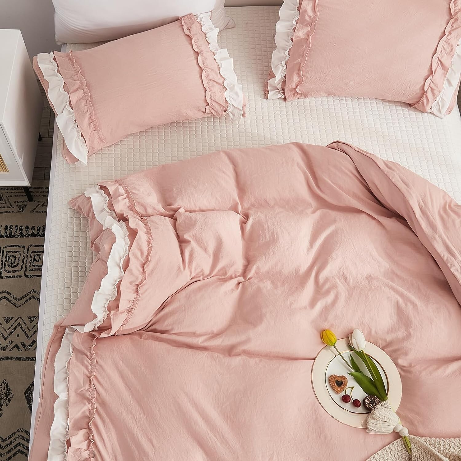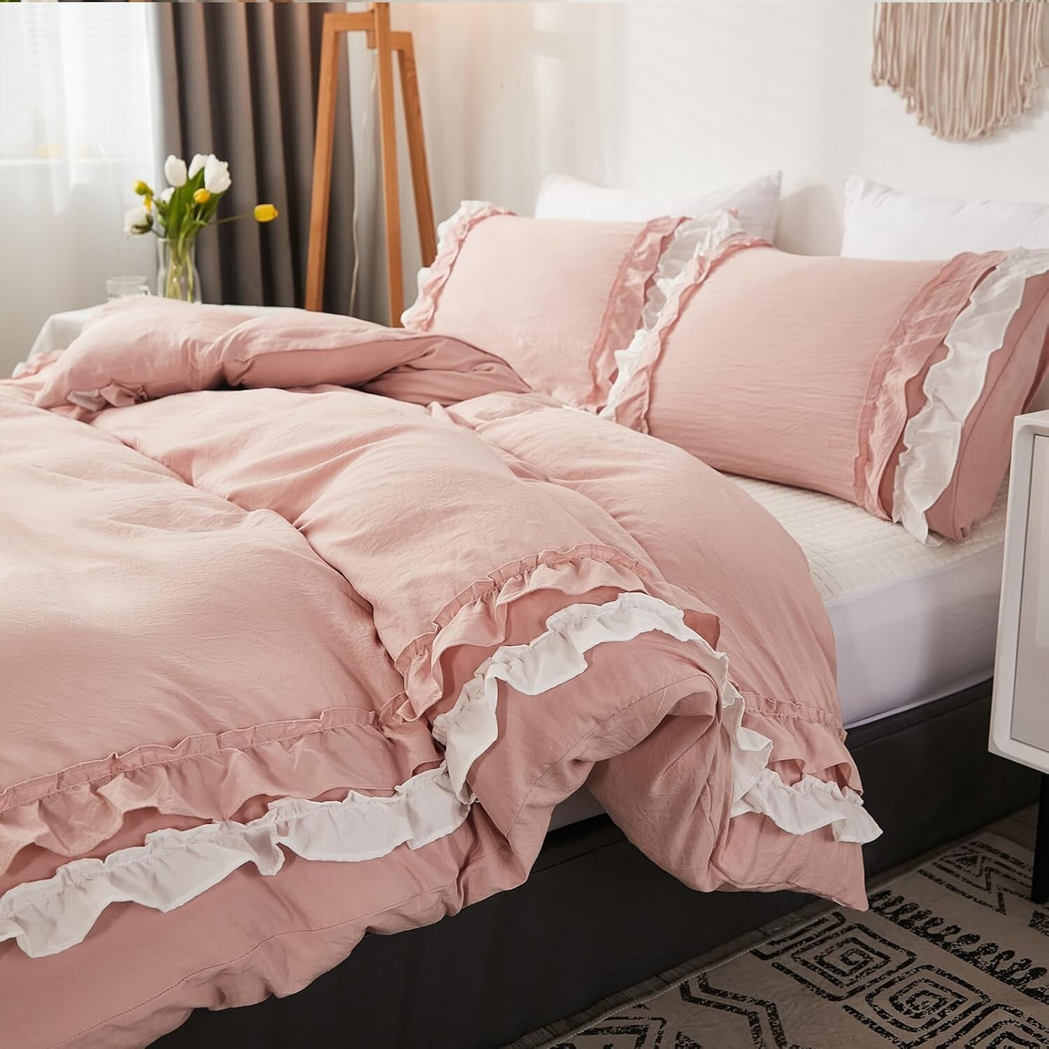 Handmade Ruffle duvet Cover Set, Boho Bedding Duvet Set,King/Queen/twin Duvet