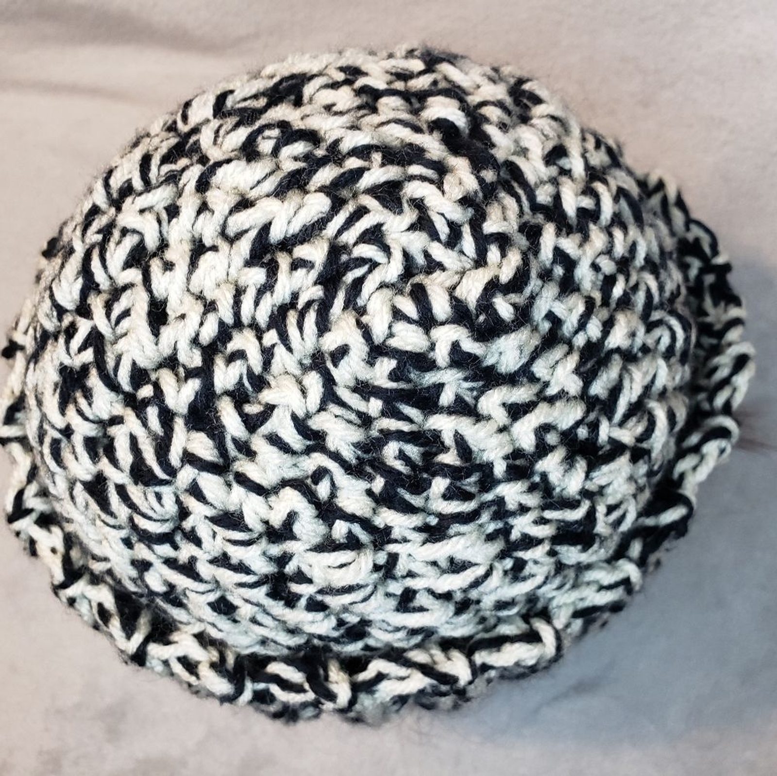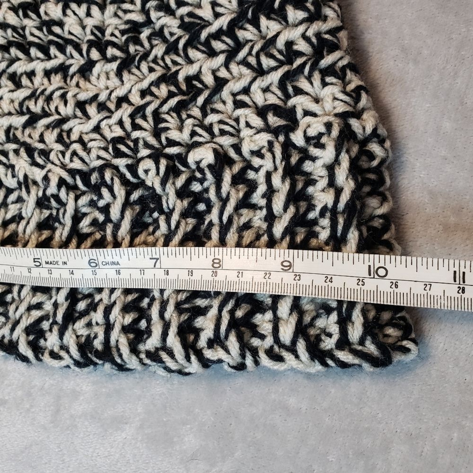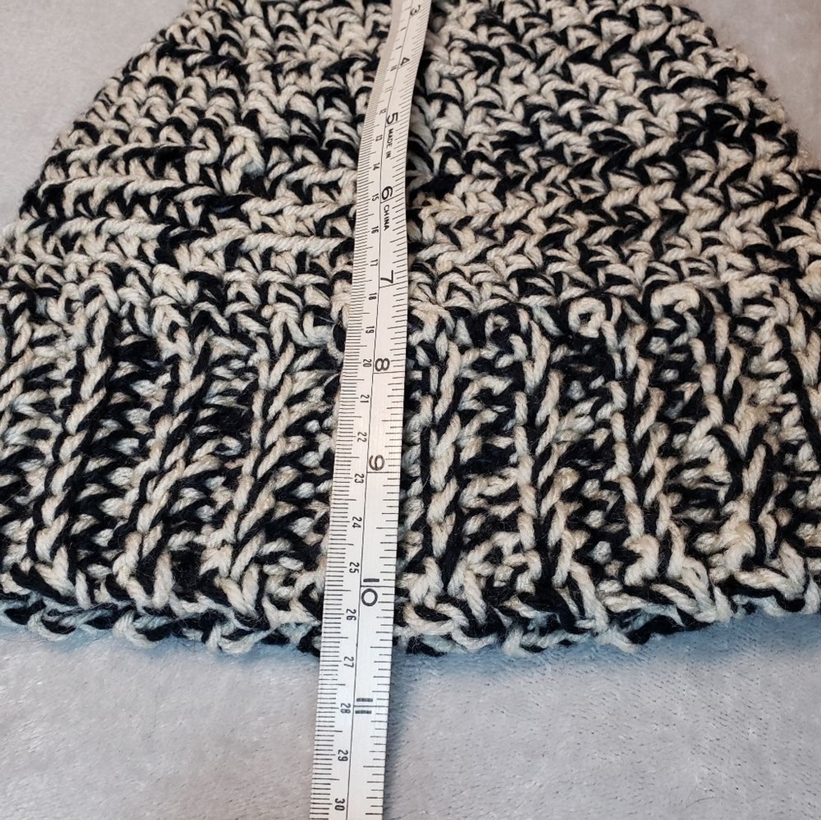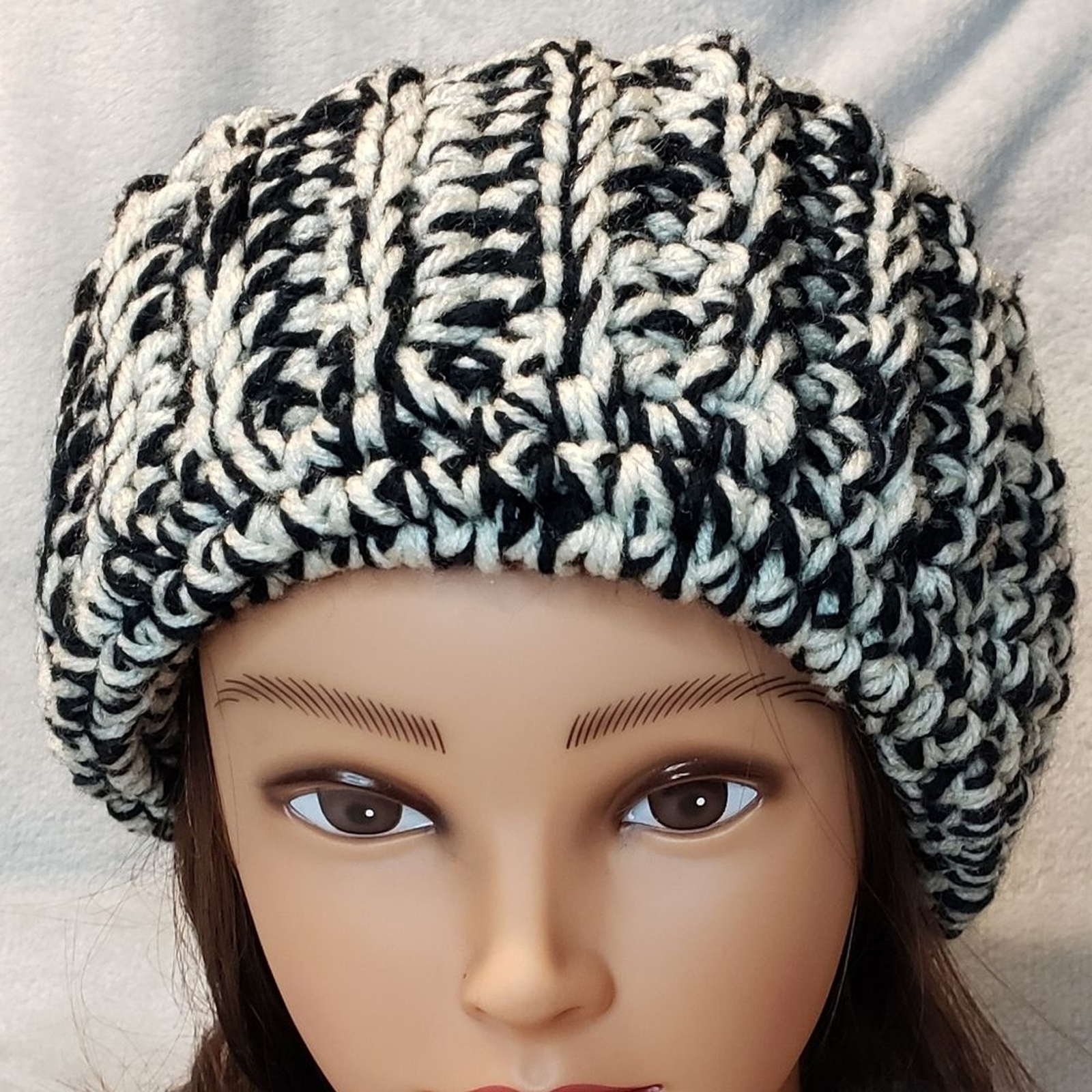 как выглядит Crochet Beanie Hat, Ribbed, Chunky, New, Handmade, Unisex, Black and off white фото