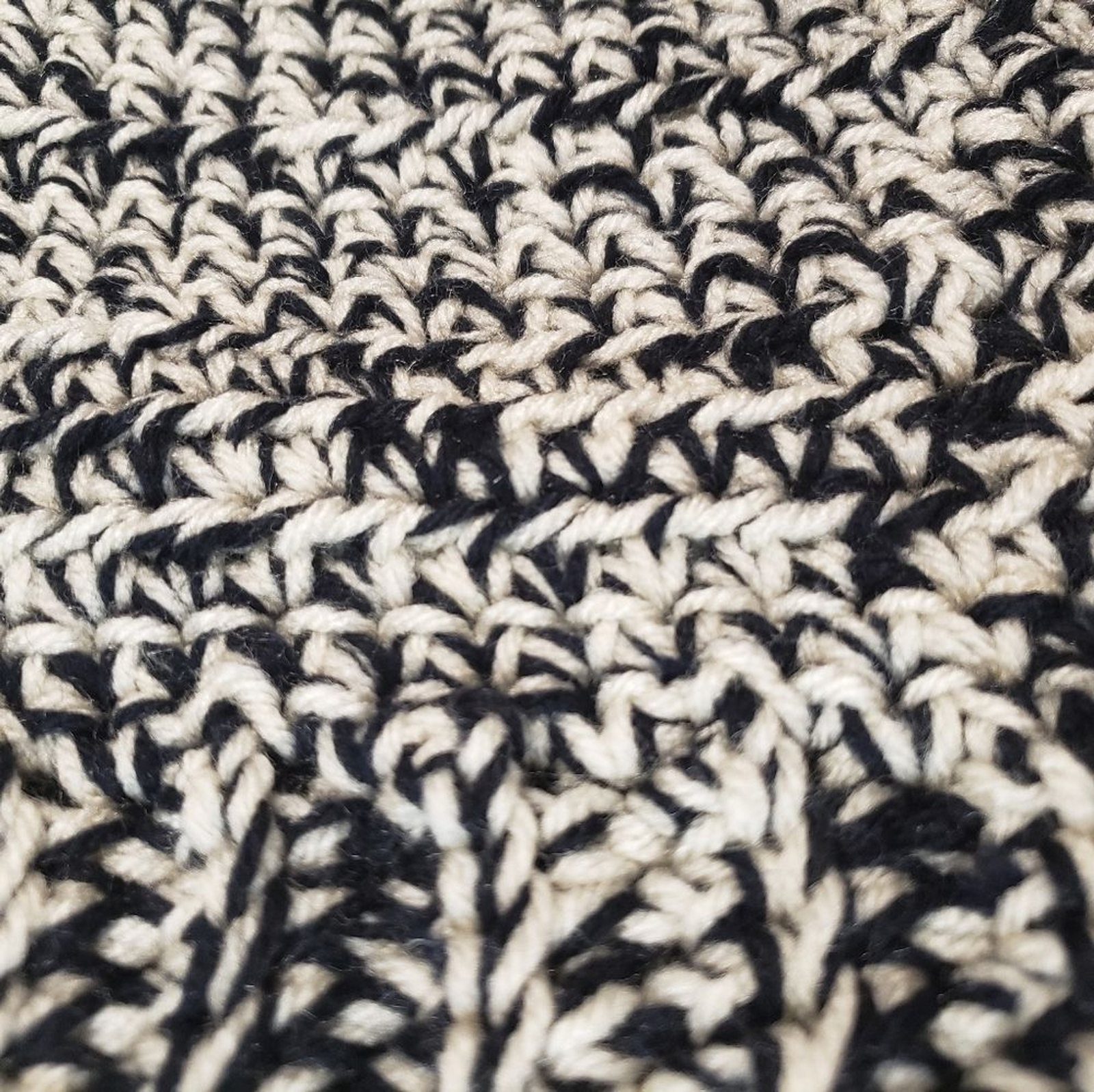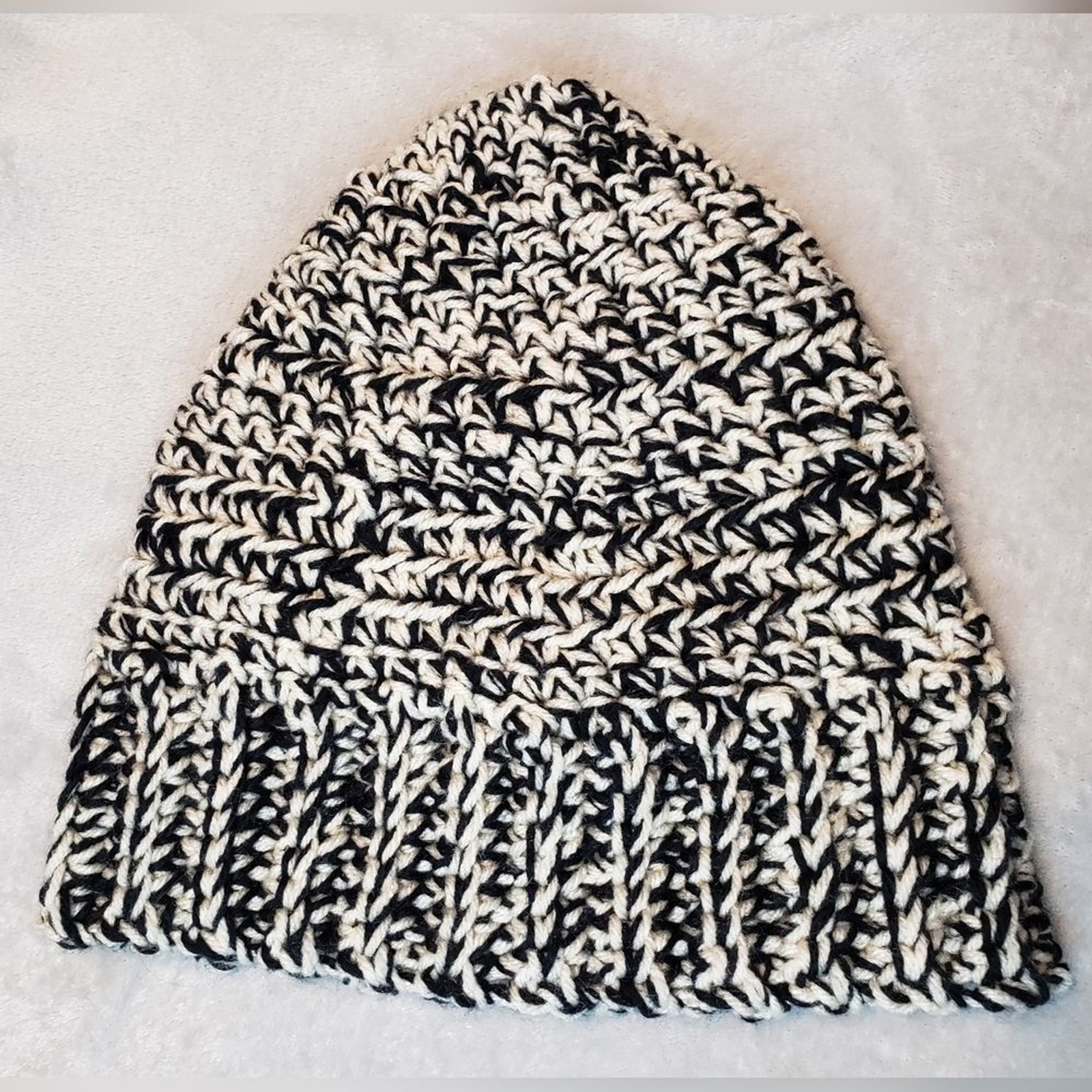 Crochet Beanie Hat, Ribbed, Chunky, New, Handmade, Unisex, Black and off white