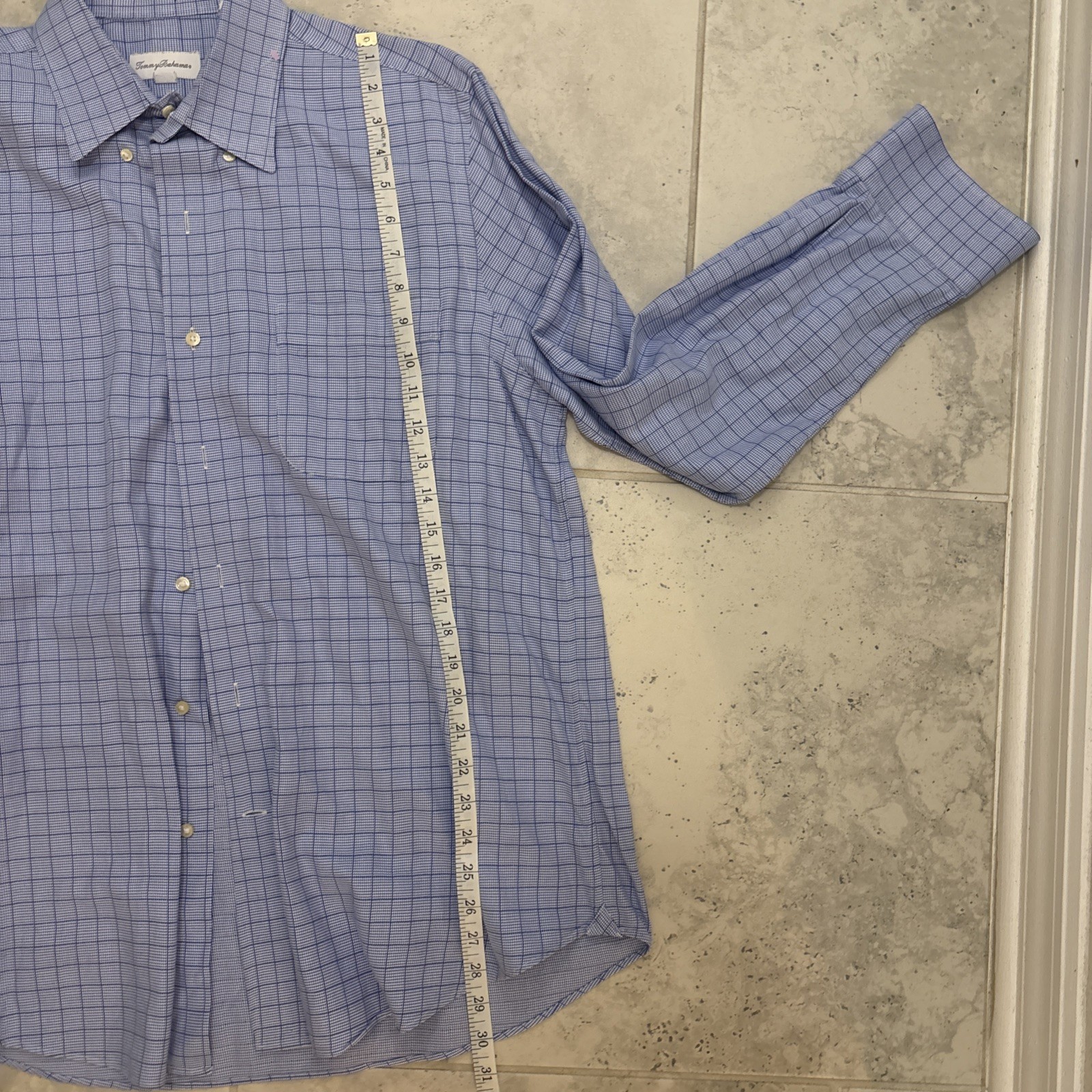 Tommy Bahama Mens 16 34/35 Blue Check 100 Cotton LS Button Up Shirt Classic