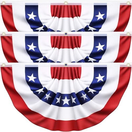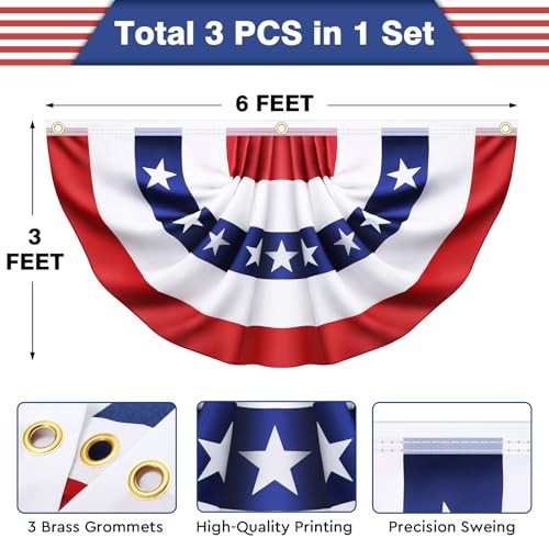3 x 6 Ft American Pleated Fan Flag, USA Patriotic Flag 3.0x6.0 Feet,3 Pack
