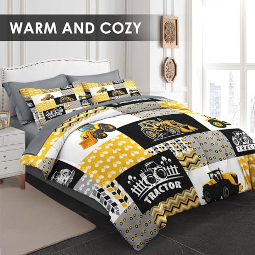 Comforter Set Size, Yellow Tractor Vintage 7 Pcs Bedding for Full Tractor 2