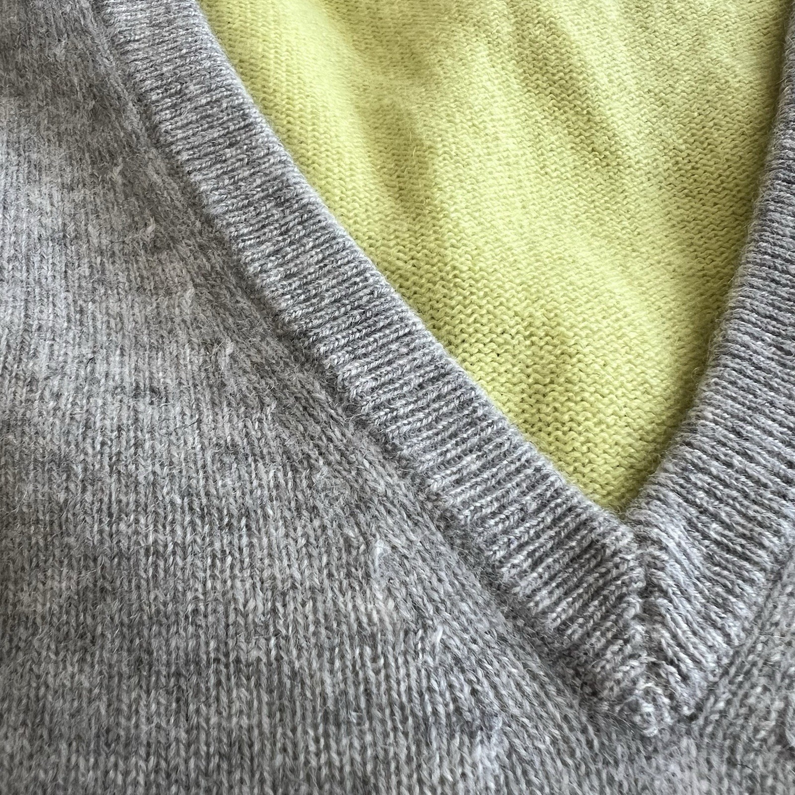 как выглядит Aqua 100 Cashmere Colorblock V-Neck Sweater Gray Neon Yellow Size Large фото