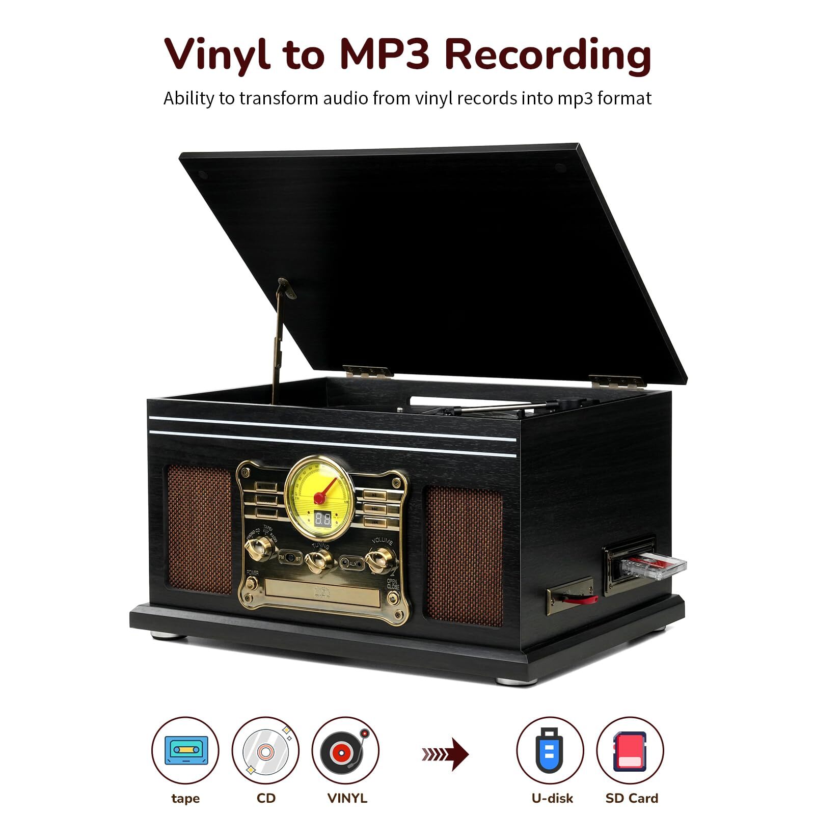Model Name: Multifunctional Record Player All In One Black