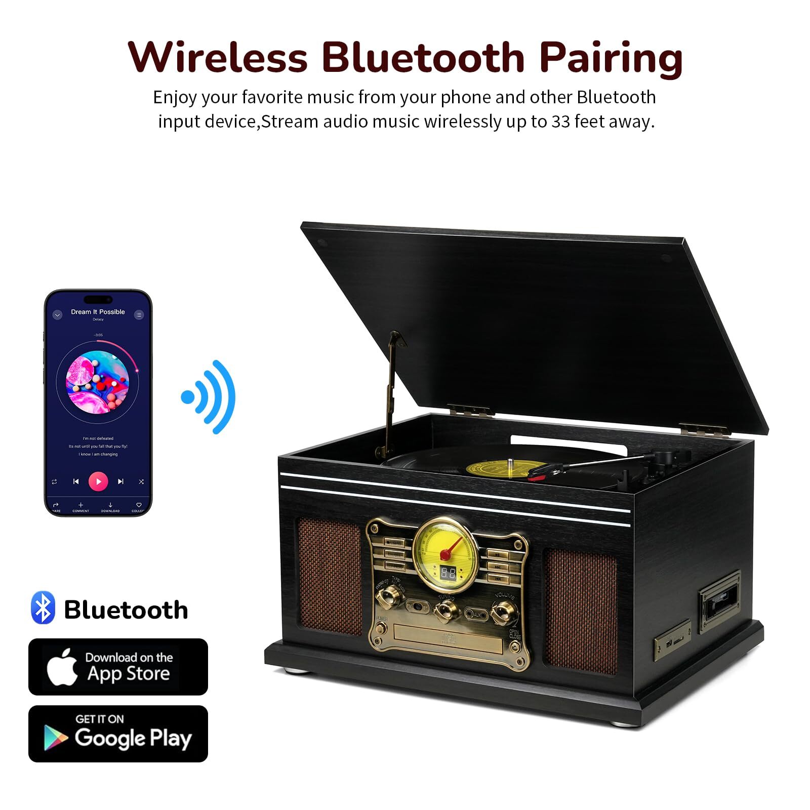 Bluetooth Record Player 10 in 1,3-Speed Turntable for Vinyl with Speakers, LP...