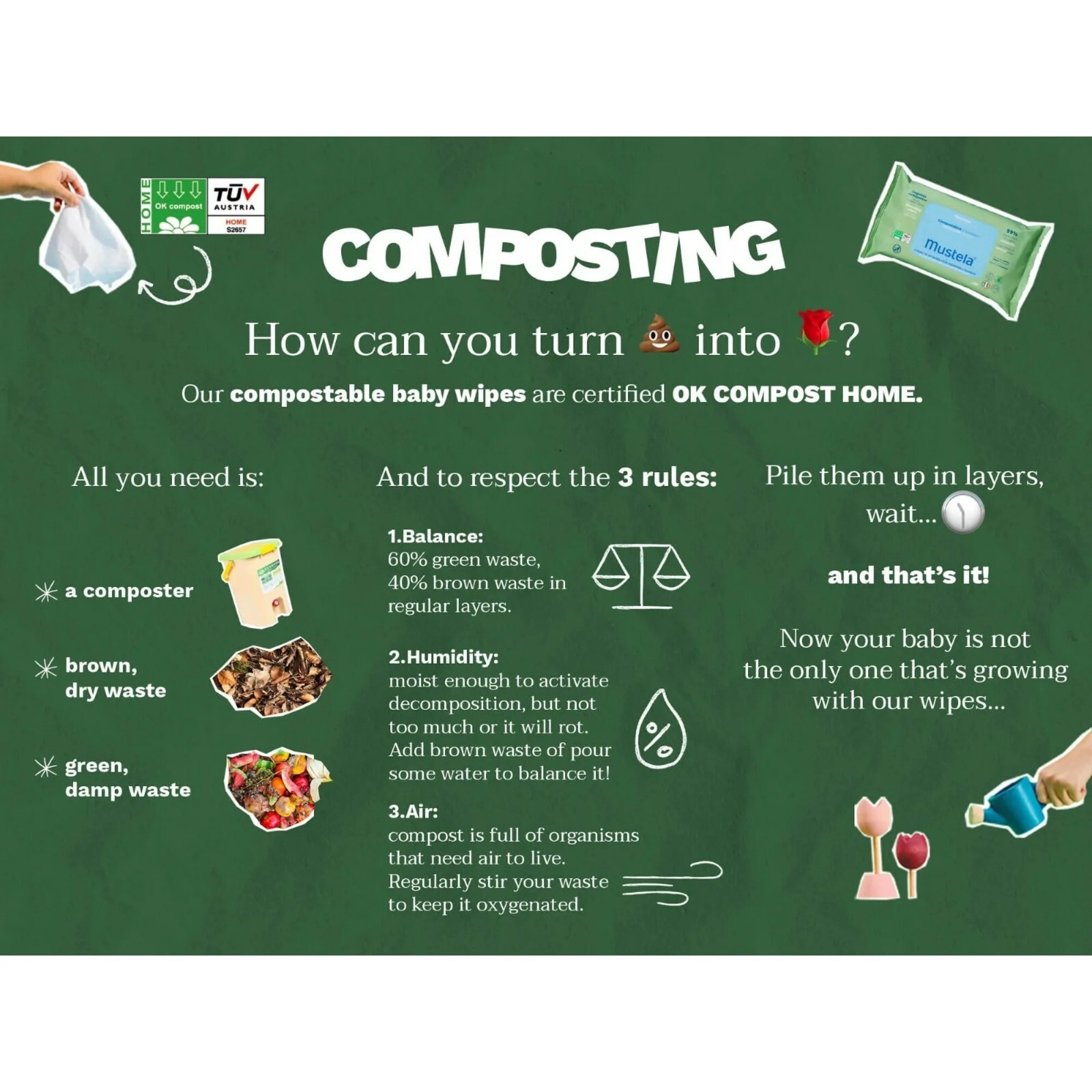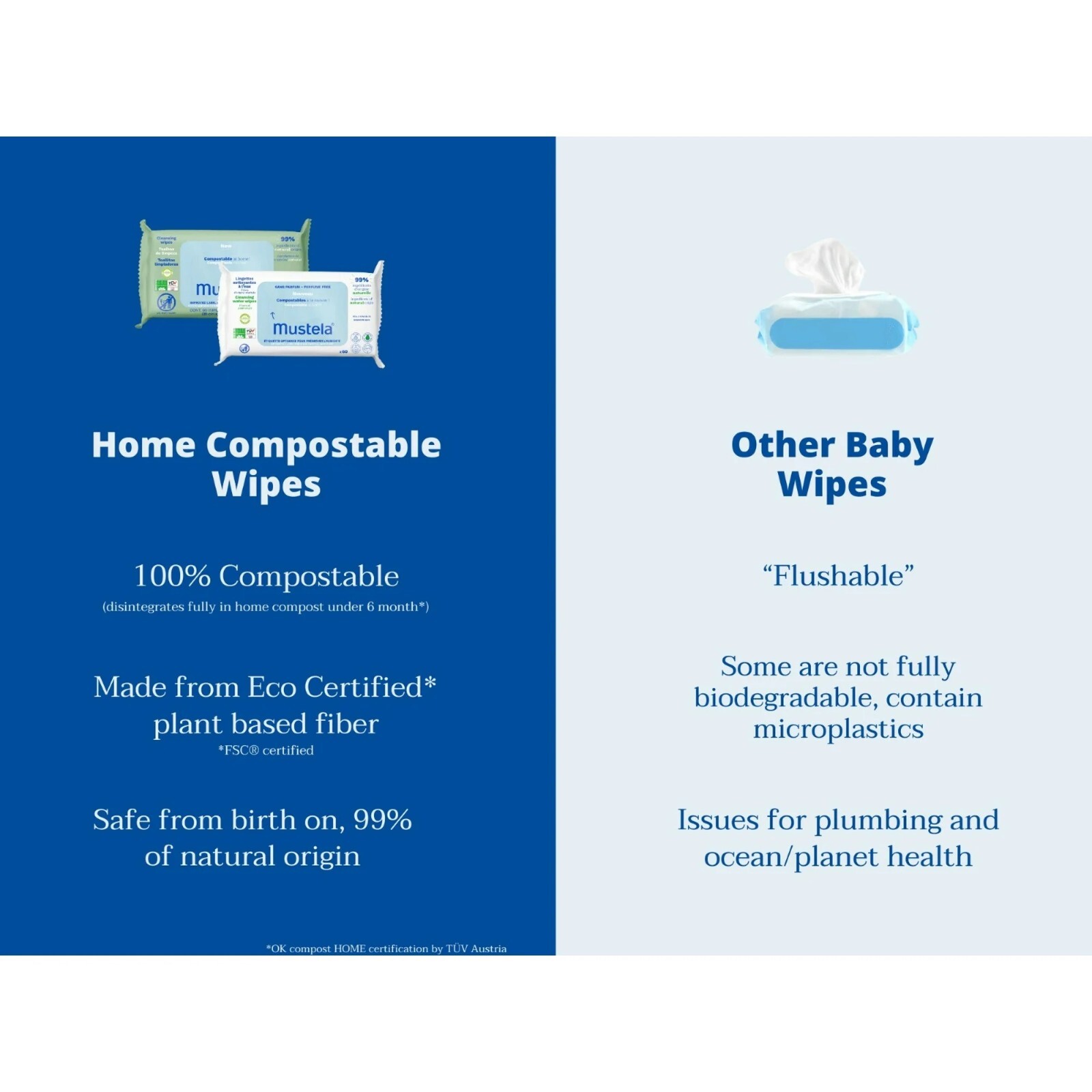 Mustela Compostable Unscented Cleansing Wipes 60 Wipes For Sensitive Skin.