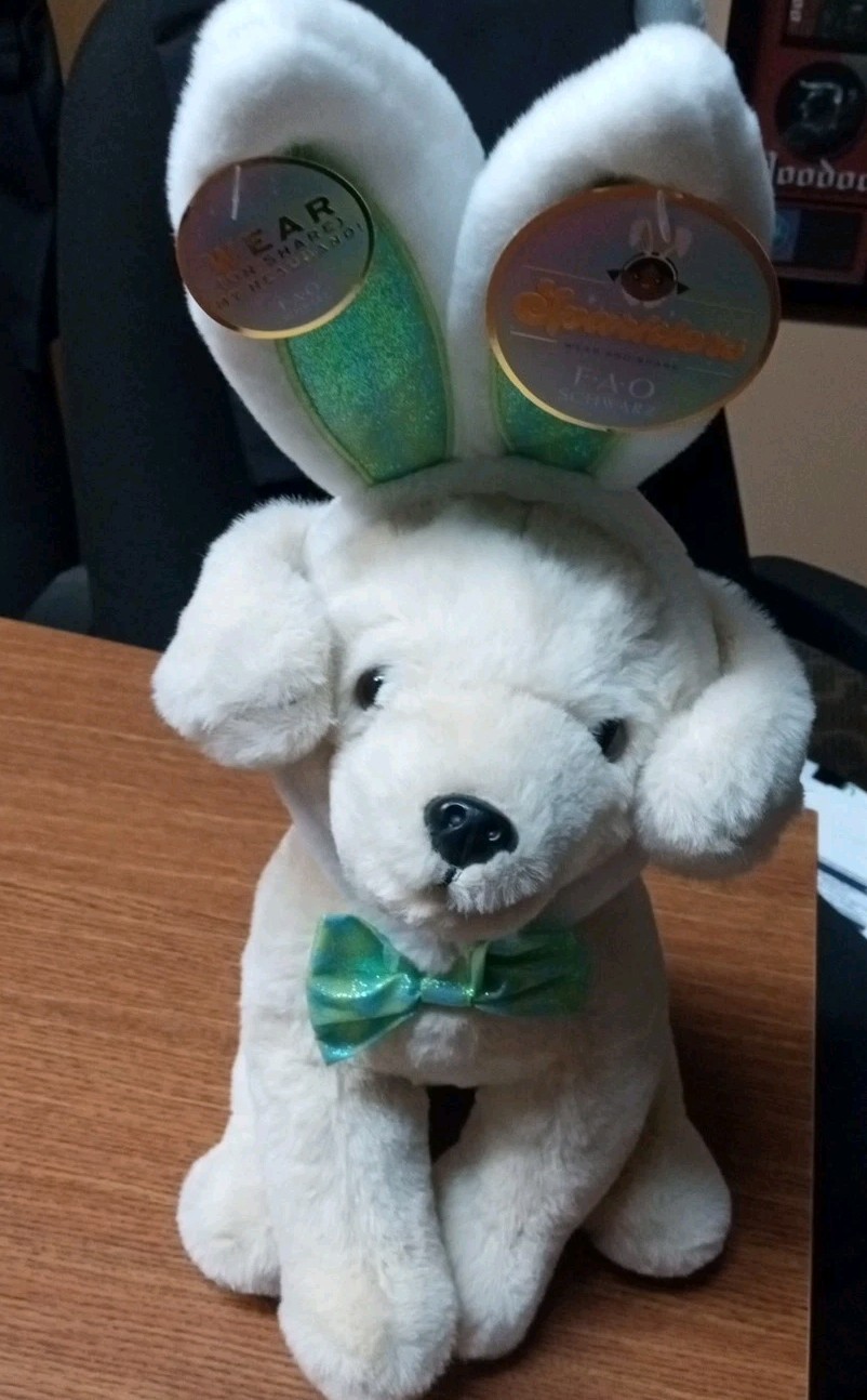 FAO Schwarz Plush 12 Labrador Puppy Dog Stuffed Animal with Easter Bunny Ears