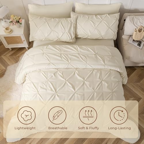 Size Comforter Set, 7-Piece Bed in a Bag, Pintuck Bedding Set for Full Beige