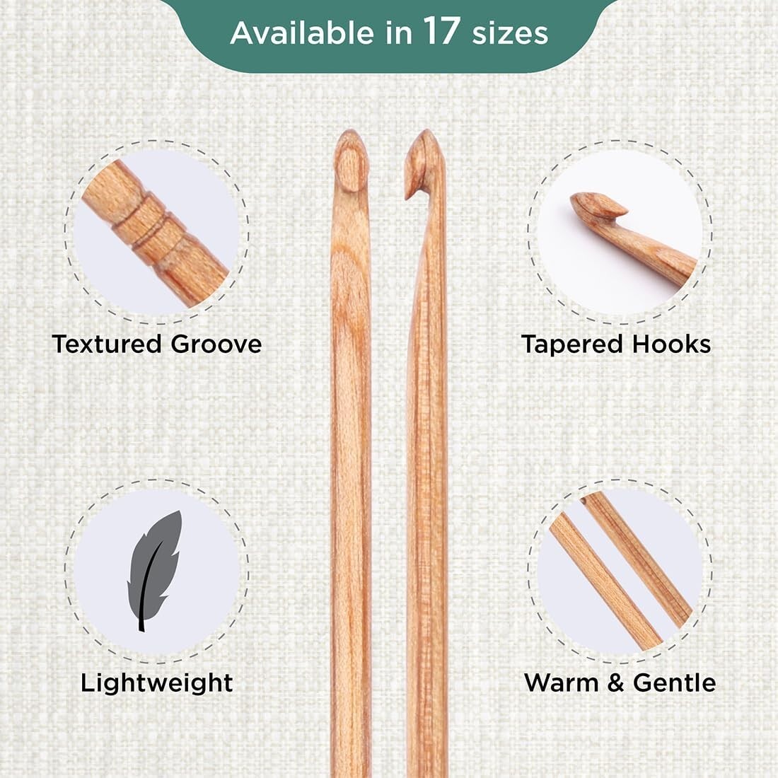 как выглядит KnitPro Basix Beech Single Ended Crochet Hooks Size 3.0mm - 15.0mm фото