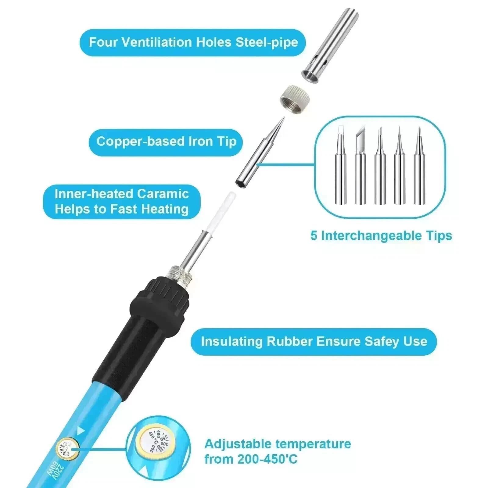 Items in package: Soldering Iron, 5 Soldering Iron Tips, 10g Wire