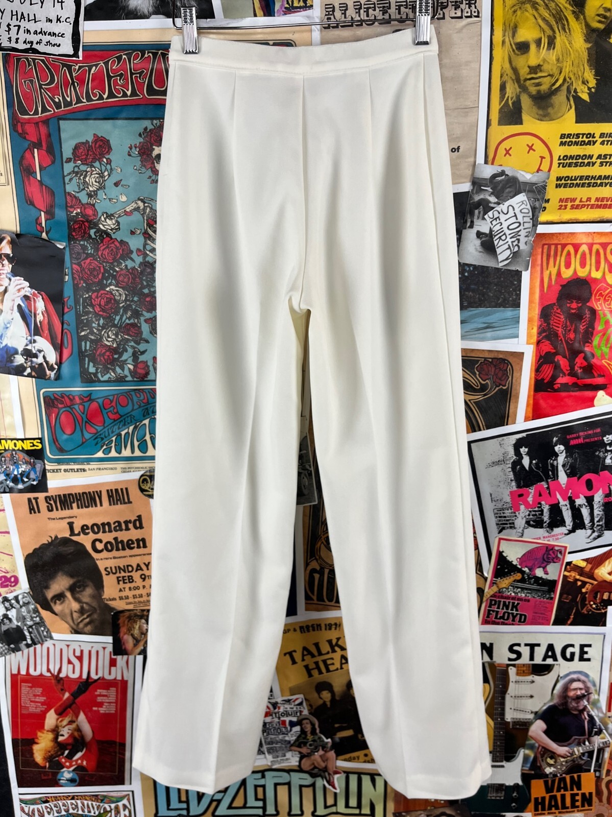 Vtg 70s-80s Womens Ivory Cream Trouser Pant 25x27 JCPenney Retro Old Money Style