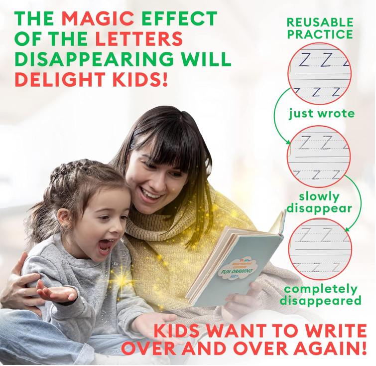 Grooved Learn to Write Workbook for kids Ages 3-5 Reusable Magic Practice Cop...