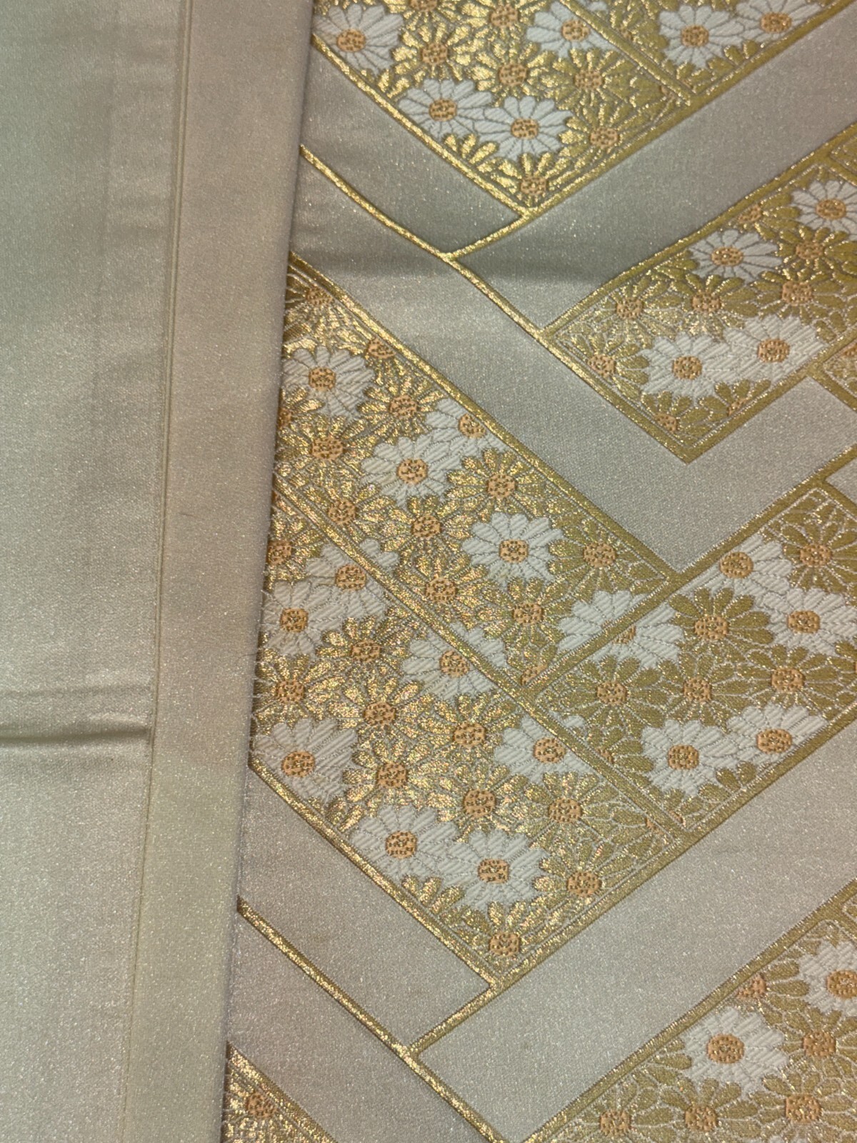 Japanese Vintage Kimono Fukuro Obi silk gold expensive embroidery 162.2x11.8in