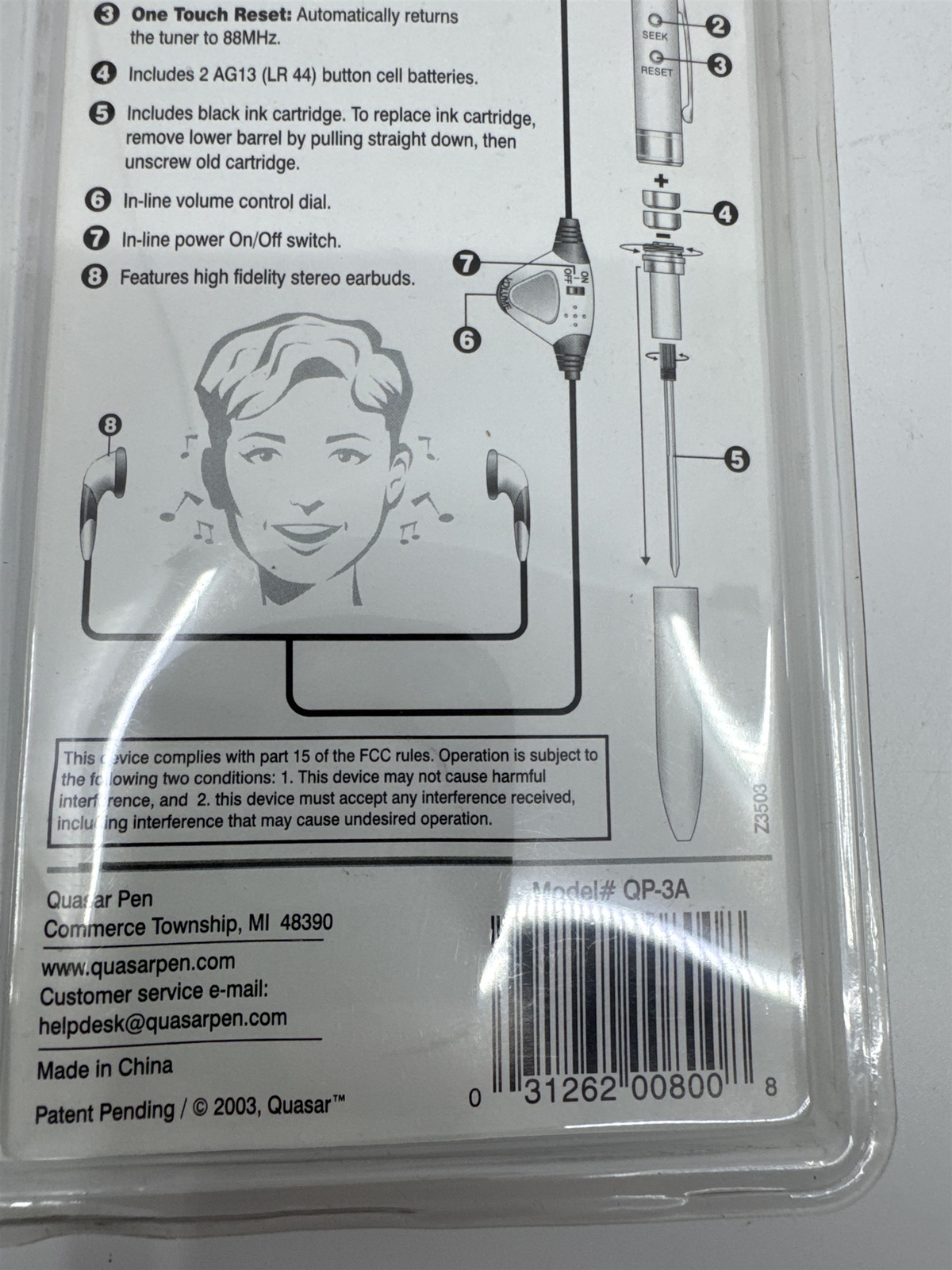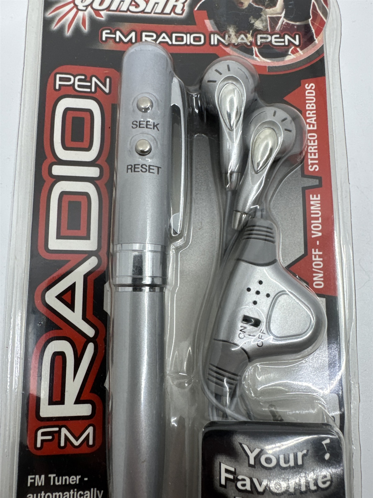 • Vintage Silver FM Radio Ballpoint Pen with Headphones By Quasar New in Box