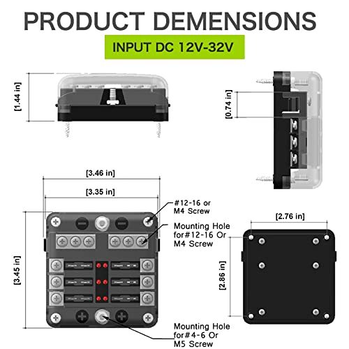 6 Way Waterproof Fuse Block with LED Indicator for 12-24V Automotive
