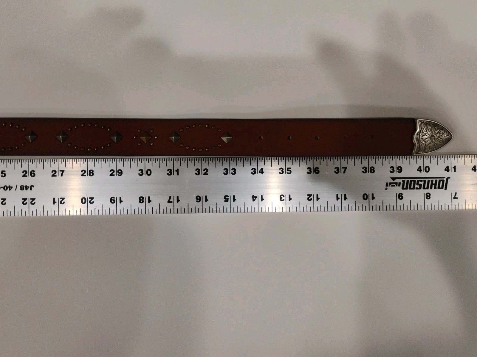 как выглядит Womens Large Leather Belt With Silver Flowered Buckle Beaded Brass Decoration фото