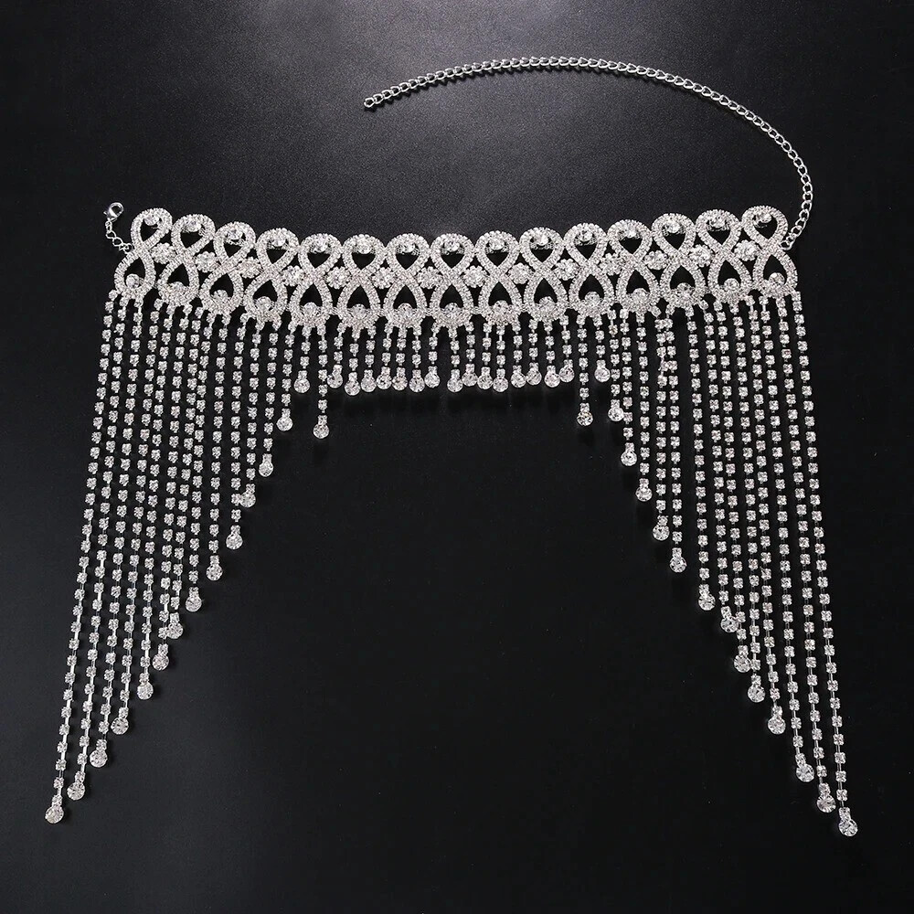Women Headdress Tassel Hair Chain Headwear Dance Face Mask Dress up Rhinestone