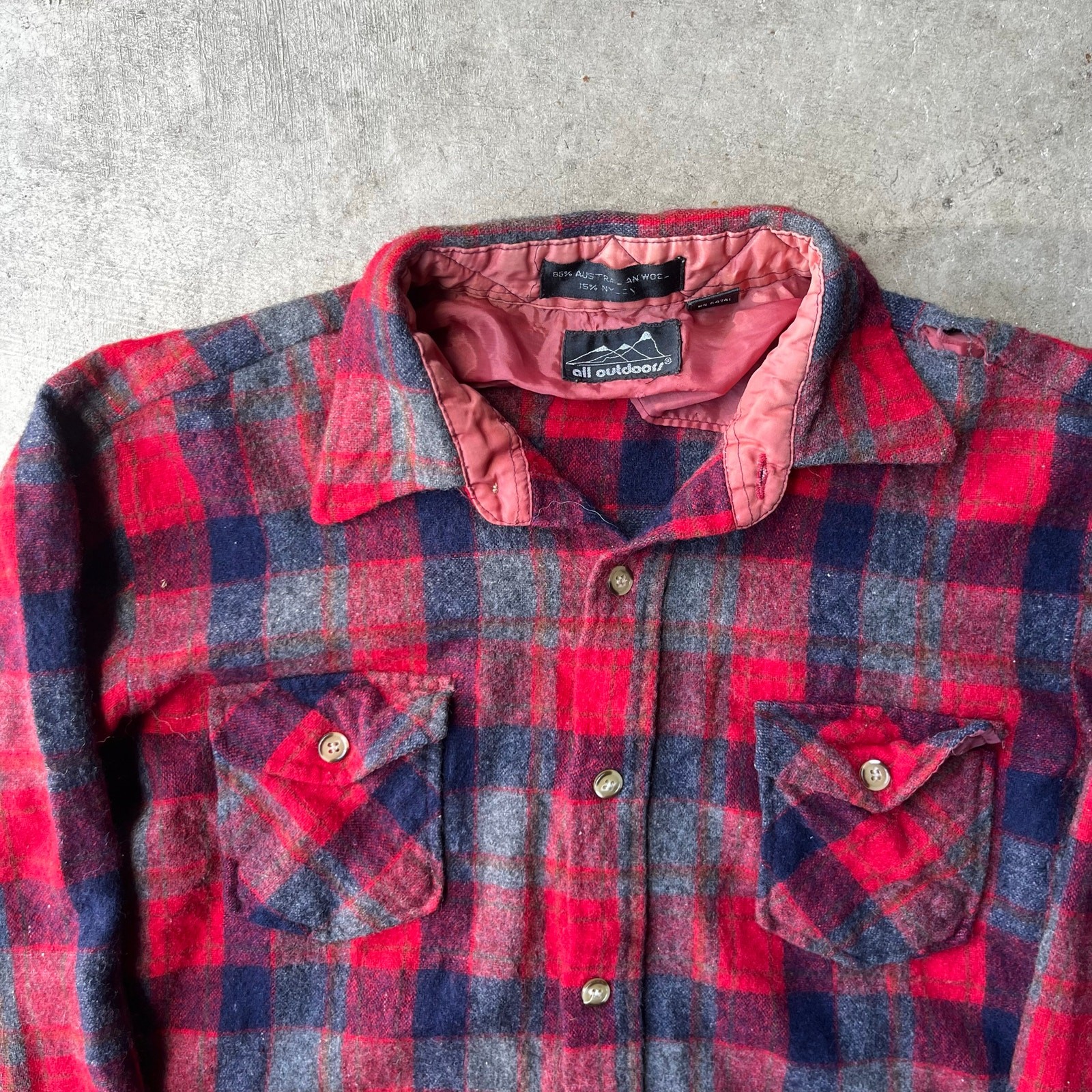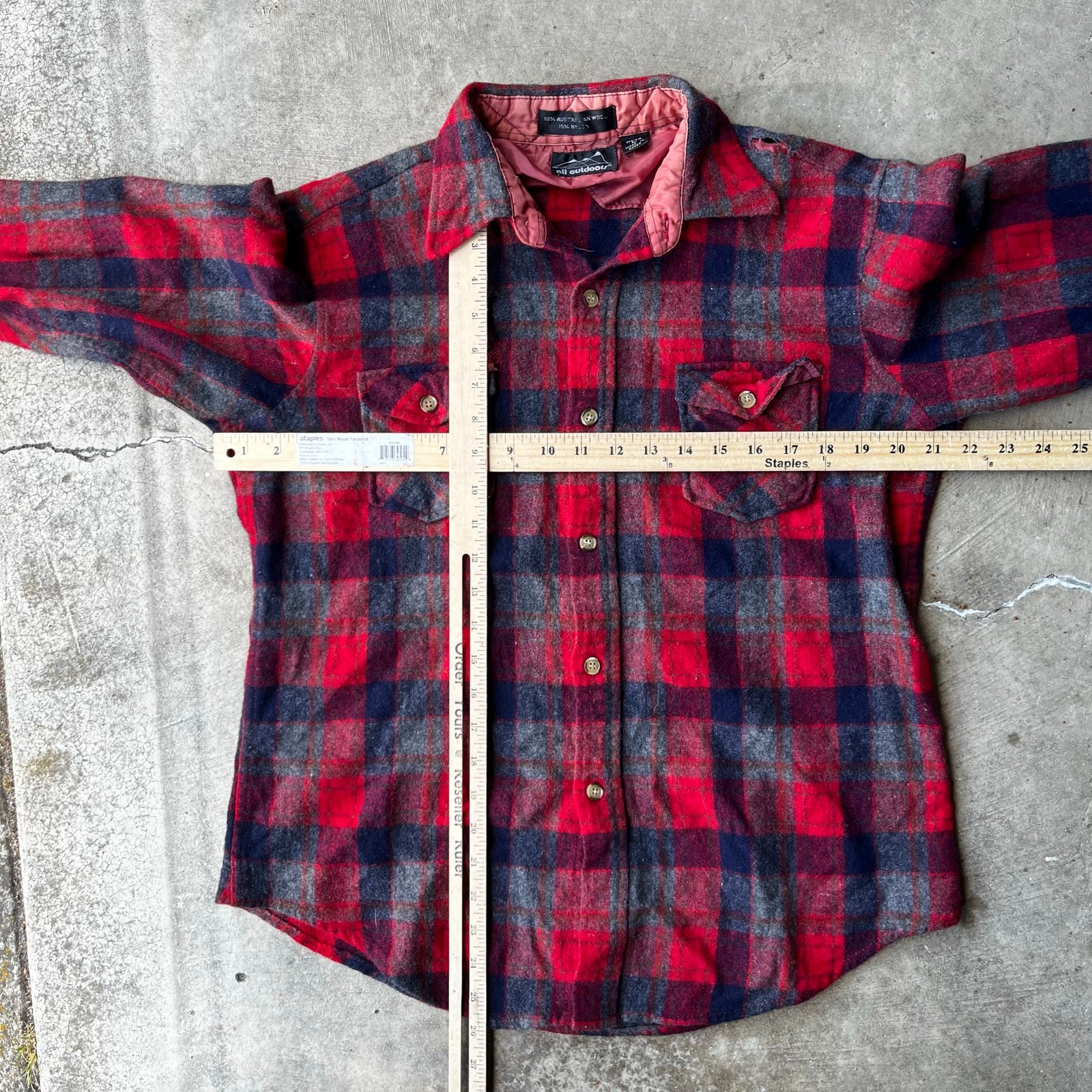 как выглядит VINTAGE PLAID FLANNEL SHIRT WOOL OUTDOORS LARGE BUFFALO RED LARGE KOREA фото