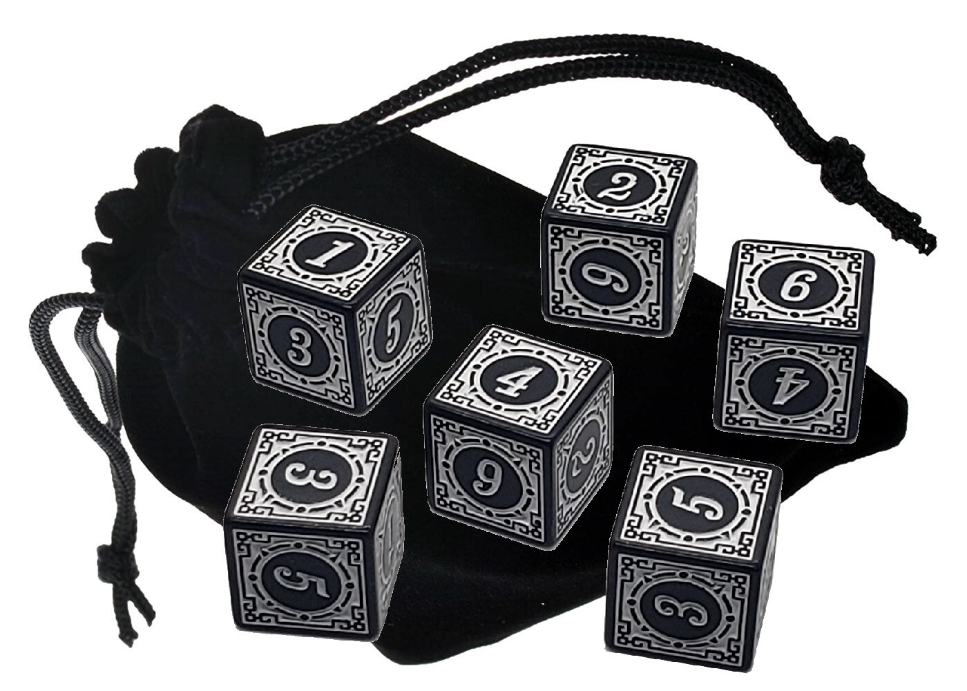 6 16mm Numbers Dice White Black w/Pouch PU Leather Red Felt Lined Dice Cup