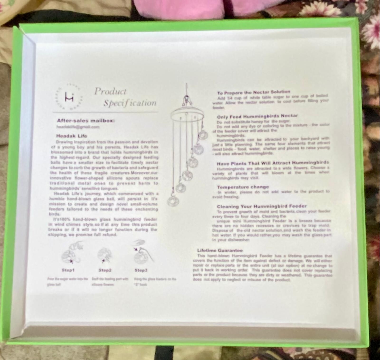 Wind Chimes Design Hummingbird Feeders with 6 Hand Blown Glass Orbs NIB