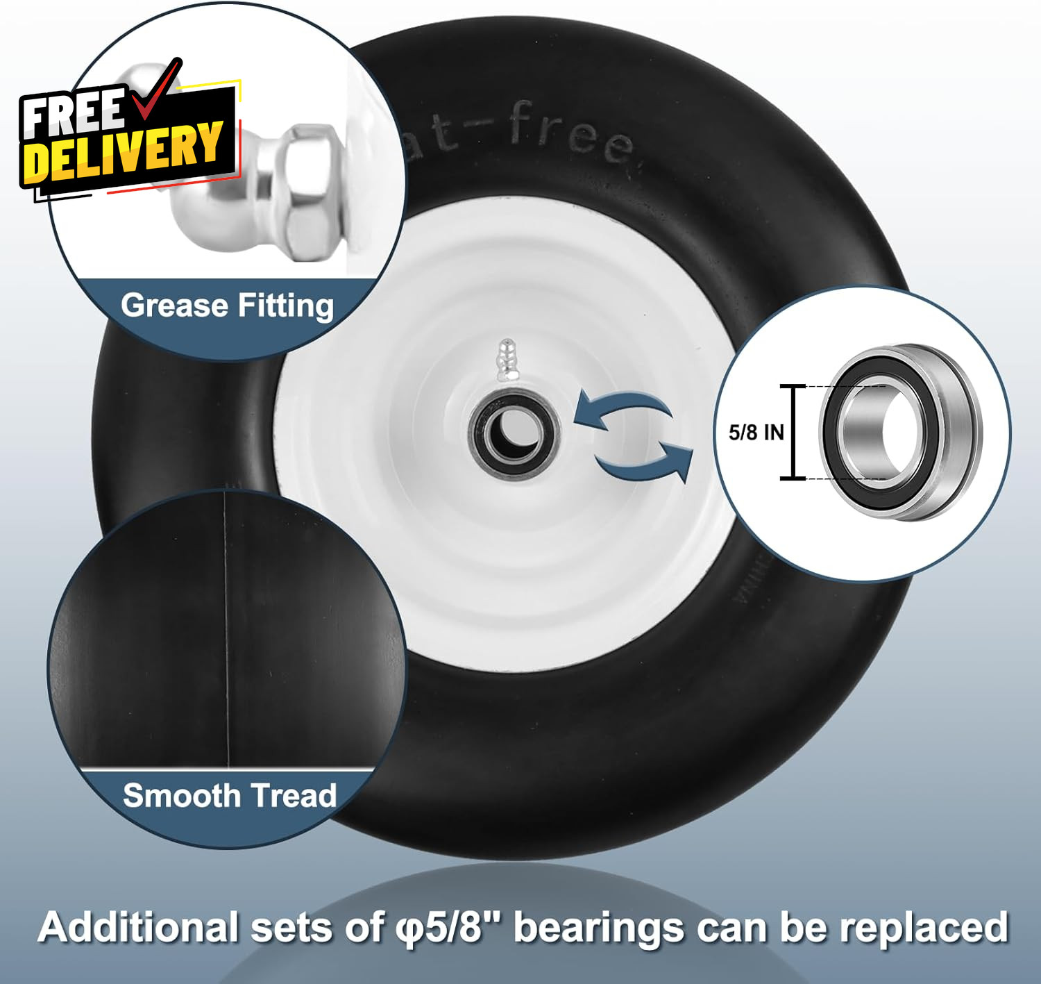 13X6.50-6 Flat Free Lawn Mower Tire and Wheelwith 3/4 5/8 Bearing 4.......