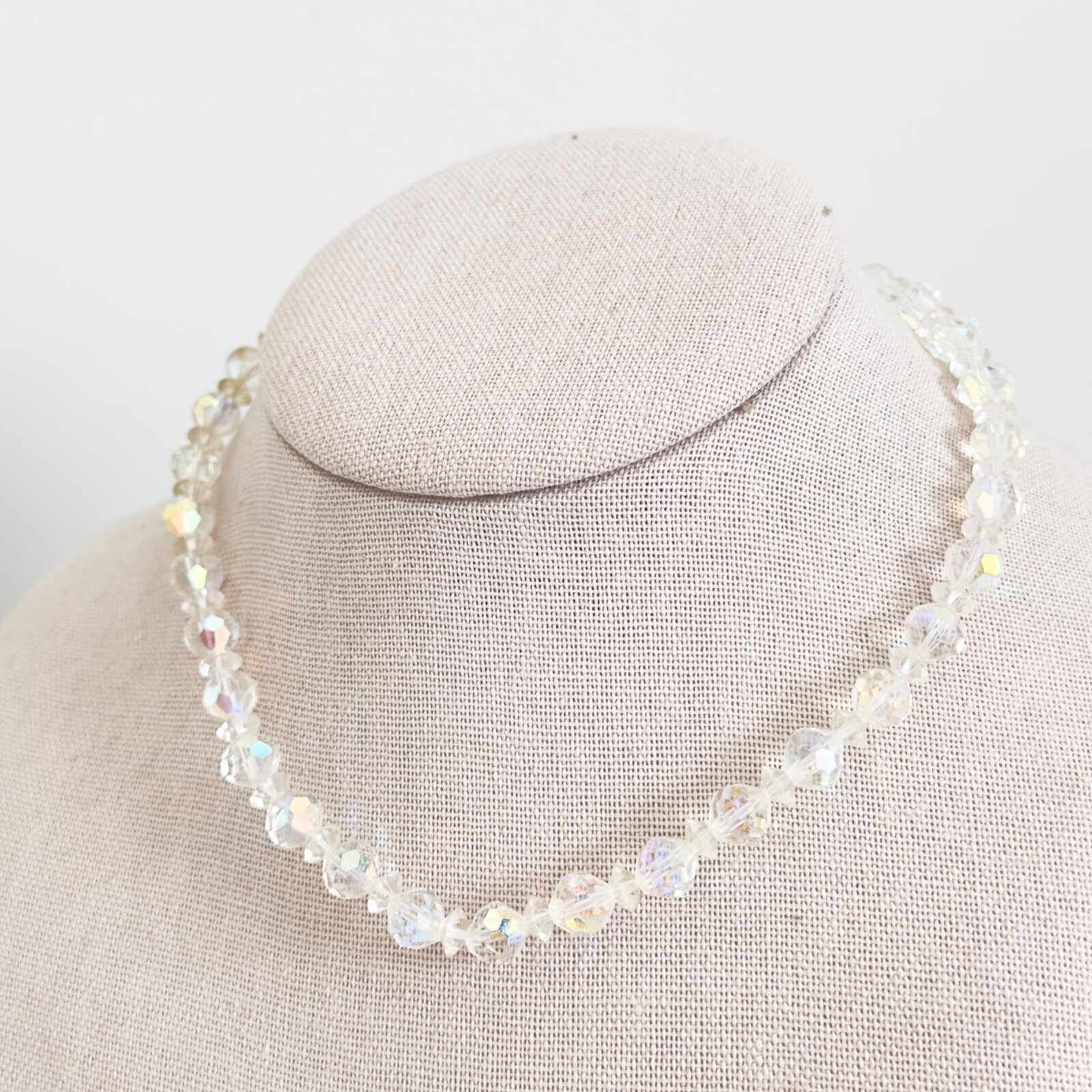 Vintage Clear Aurora Borealis AB Crystal Adjustable Choker Strand Necklace 15