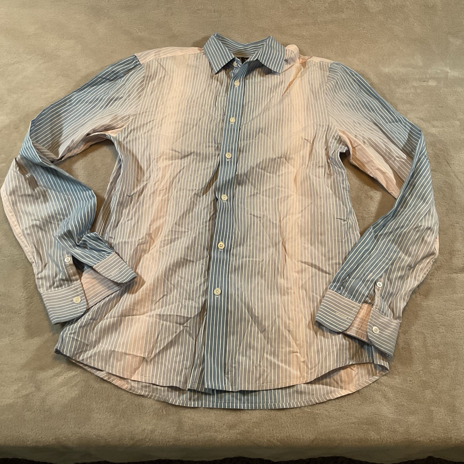 Emporio Armani Multicolor Stripe Slim Button-Down Shirt, Medium, Mens
