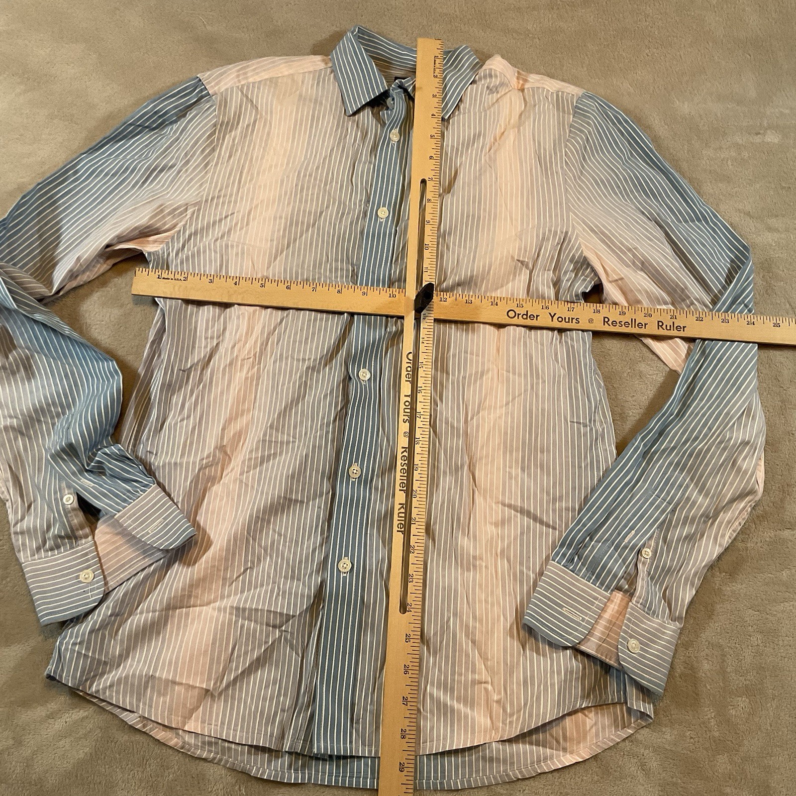 как выглядит Emporio Armani Multicolor Stripe Slim Button-Down Shirt, Medium, Mens фото