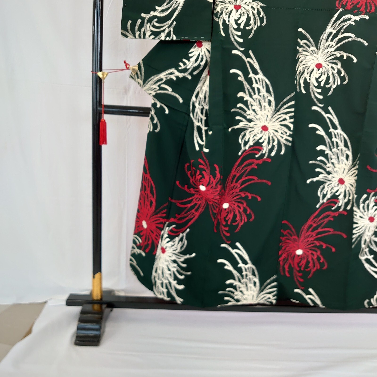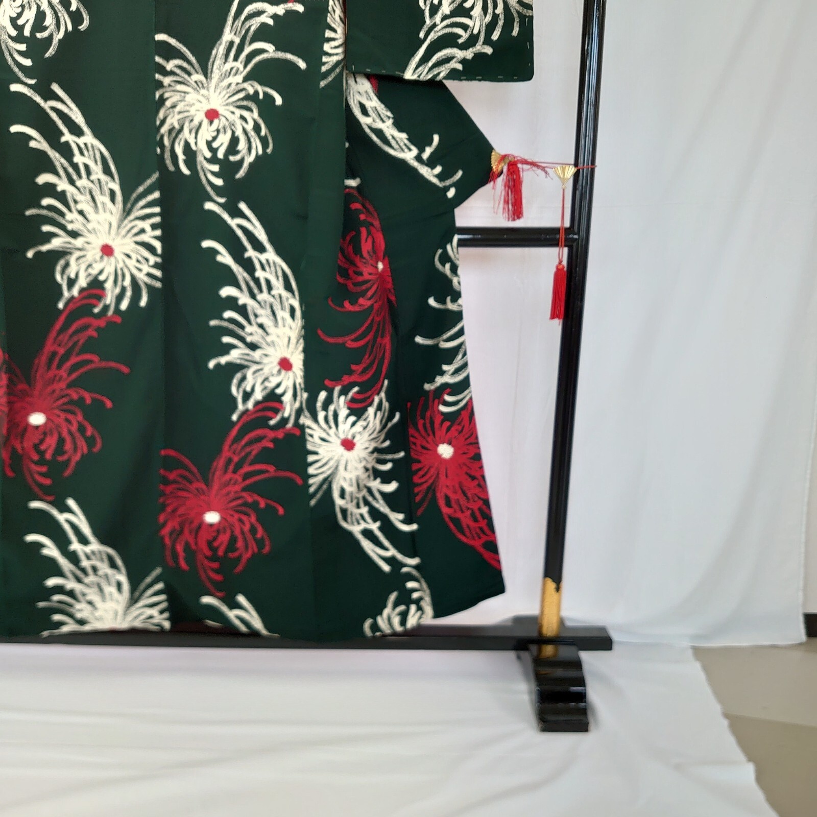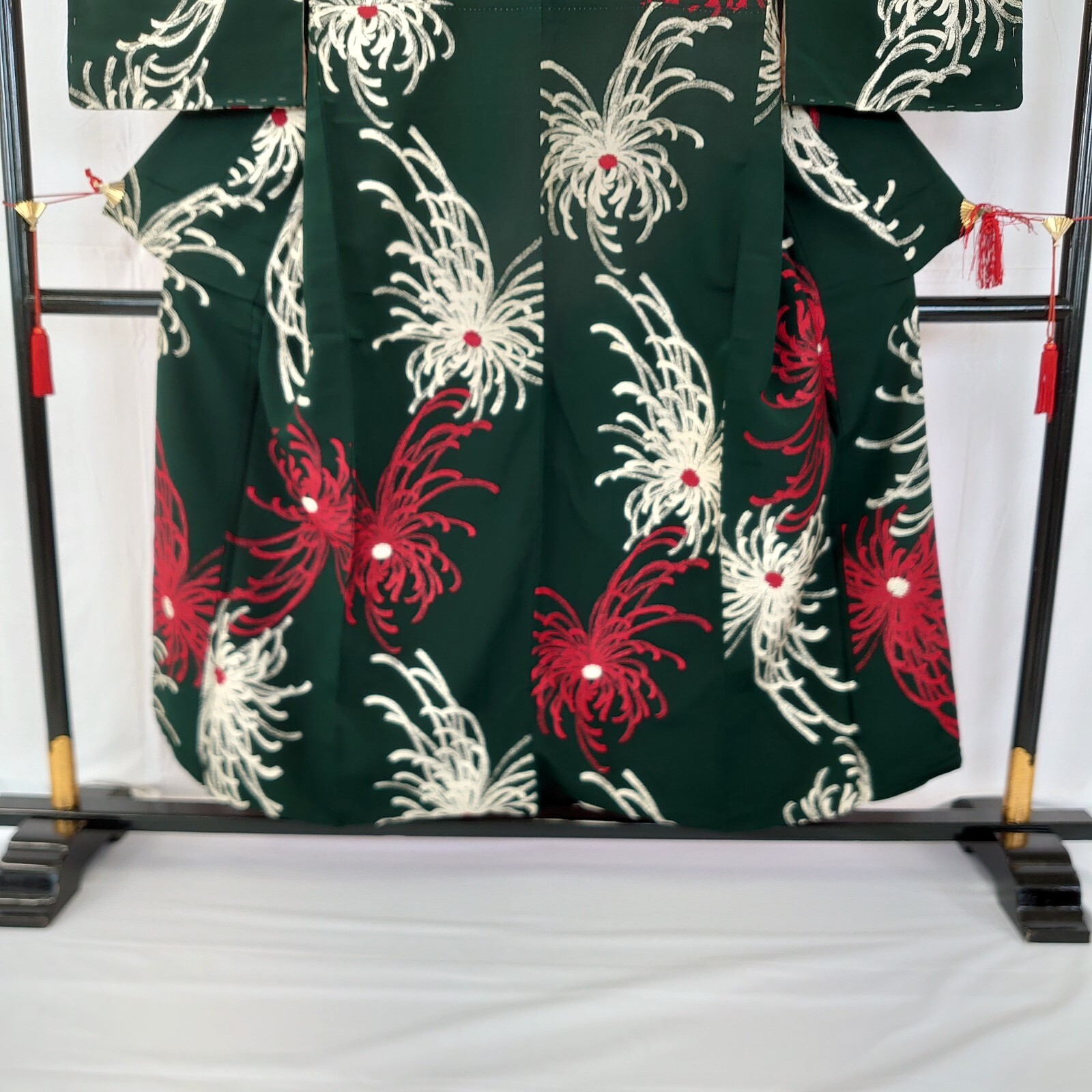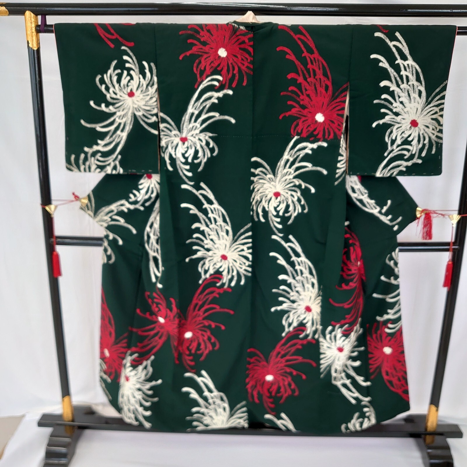Japanese Vintage Kimono silk green expensive tradition flower Height 59.44in