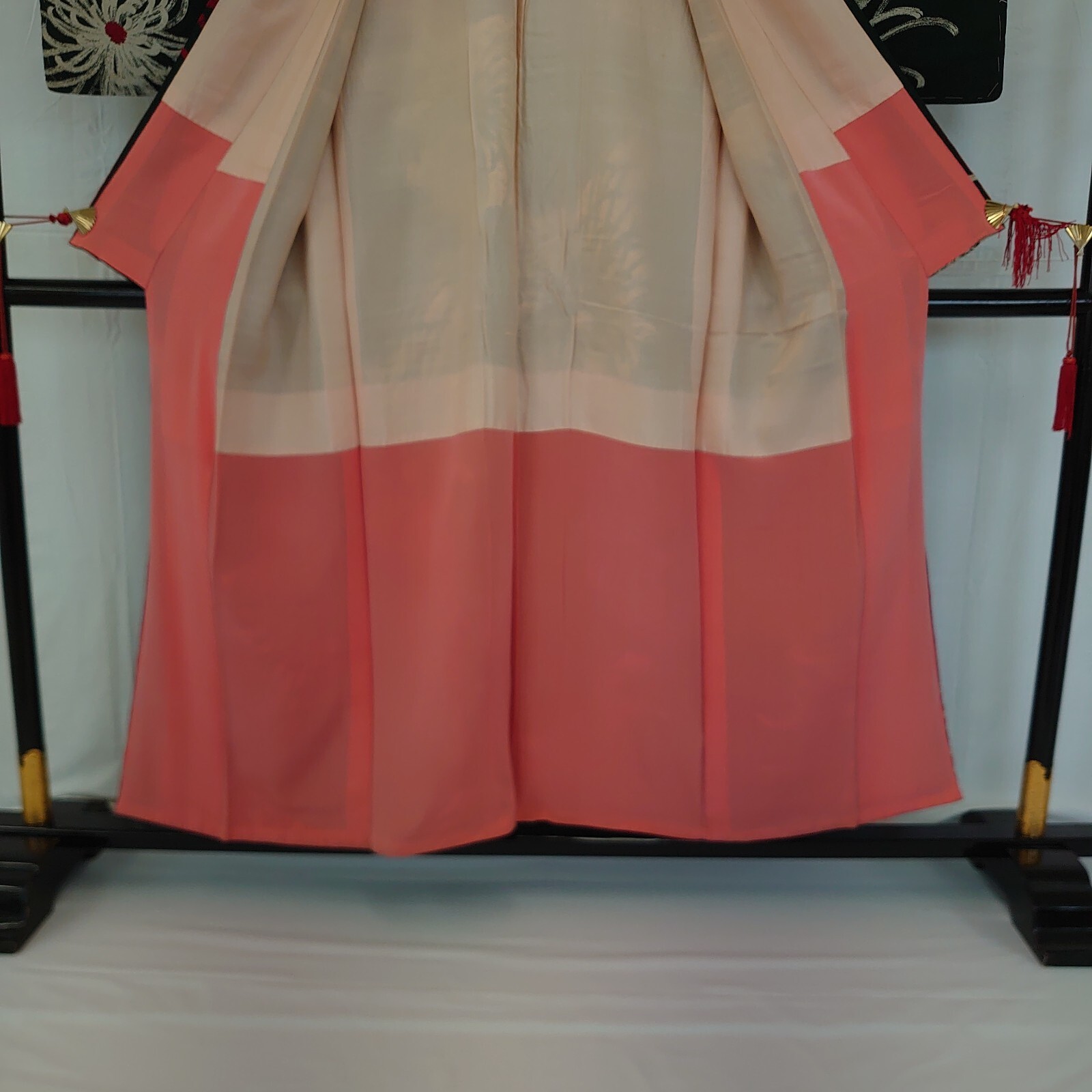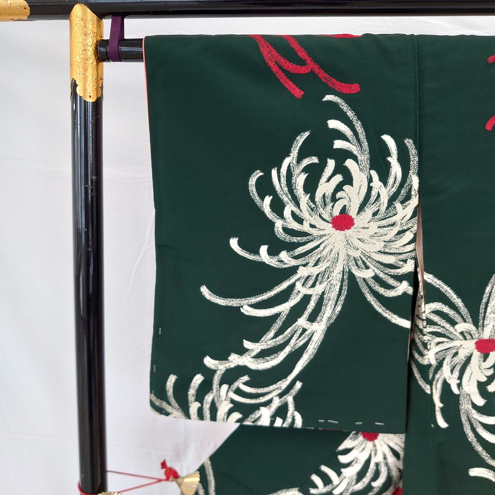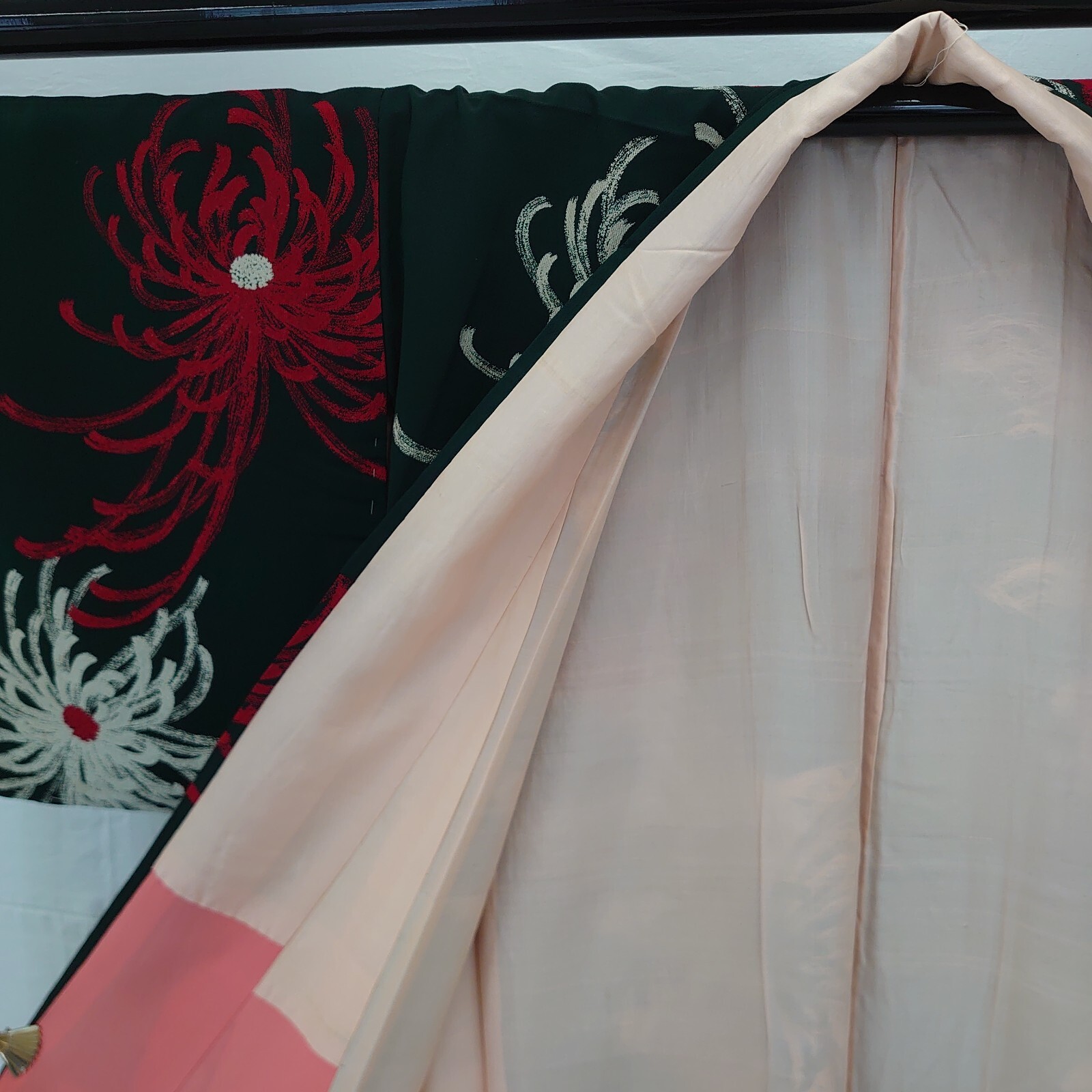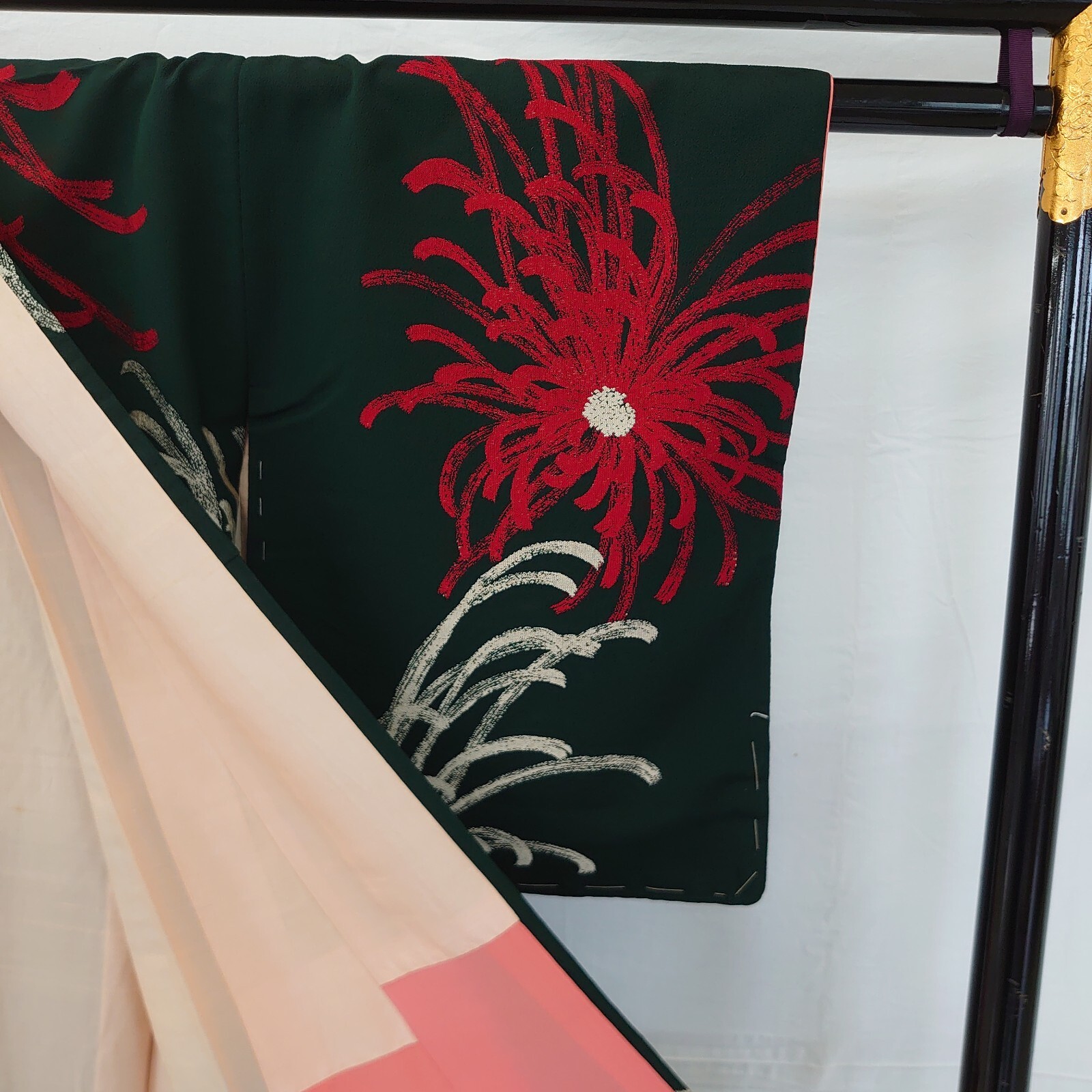 Japanese Vintage Kimono silk green expensive tradition flower Height 59.44in
