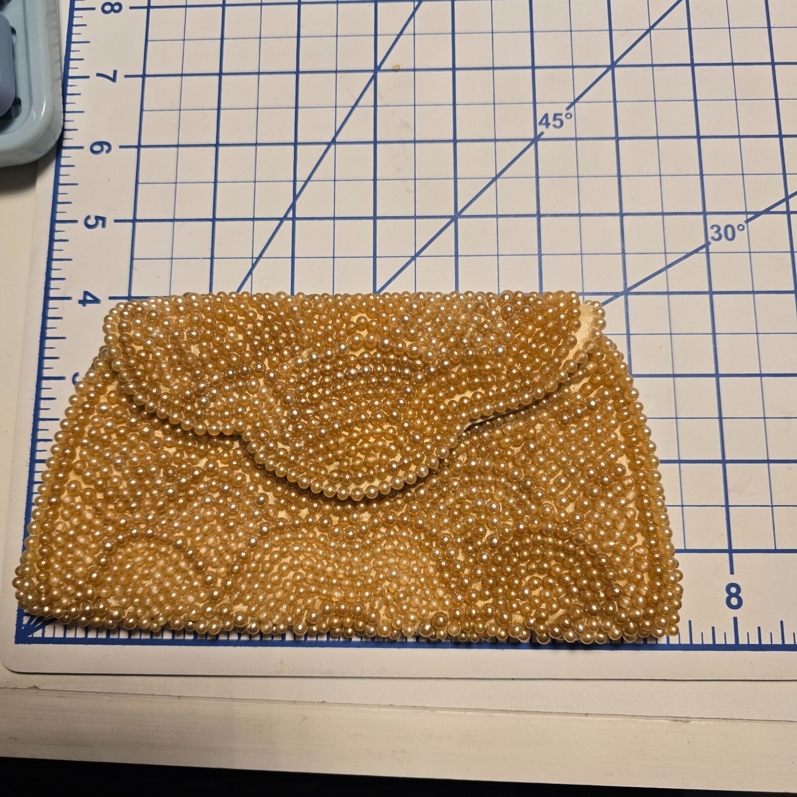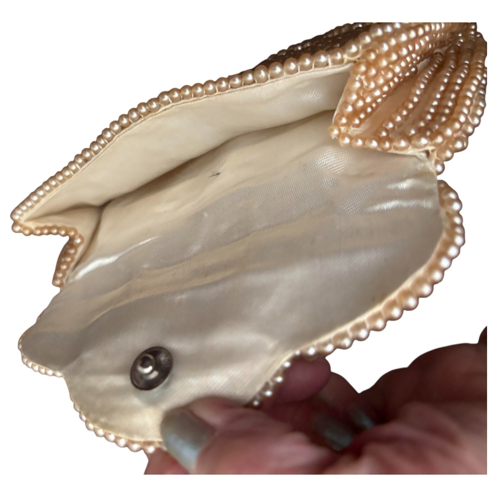 как выглядит Vintage Small Pearl Clutch Purse With Magnetic Snap No Strap Lined 7.5 x 4 in. фото