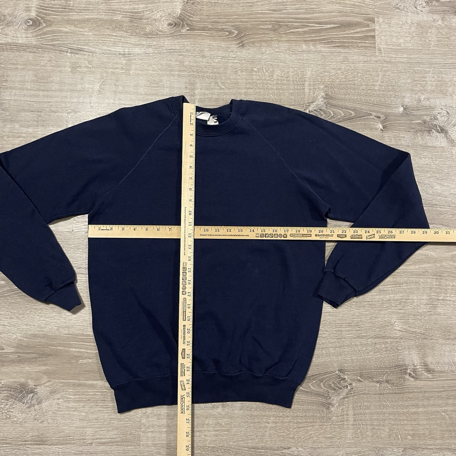 как выглядит 80s Vintage Bassett Walker 50/50 Crewneck Sweatshirt Navy Blank Large Tall USA фото