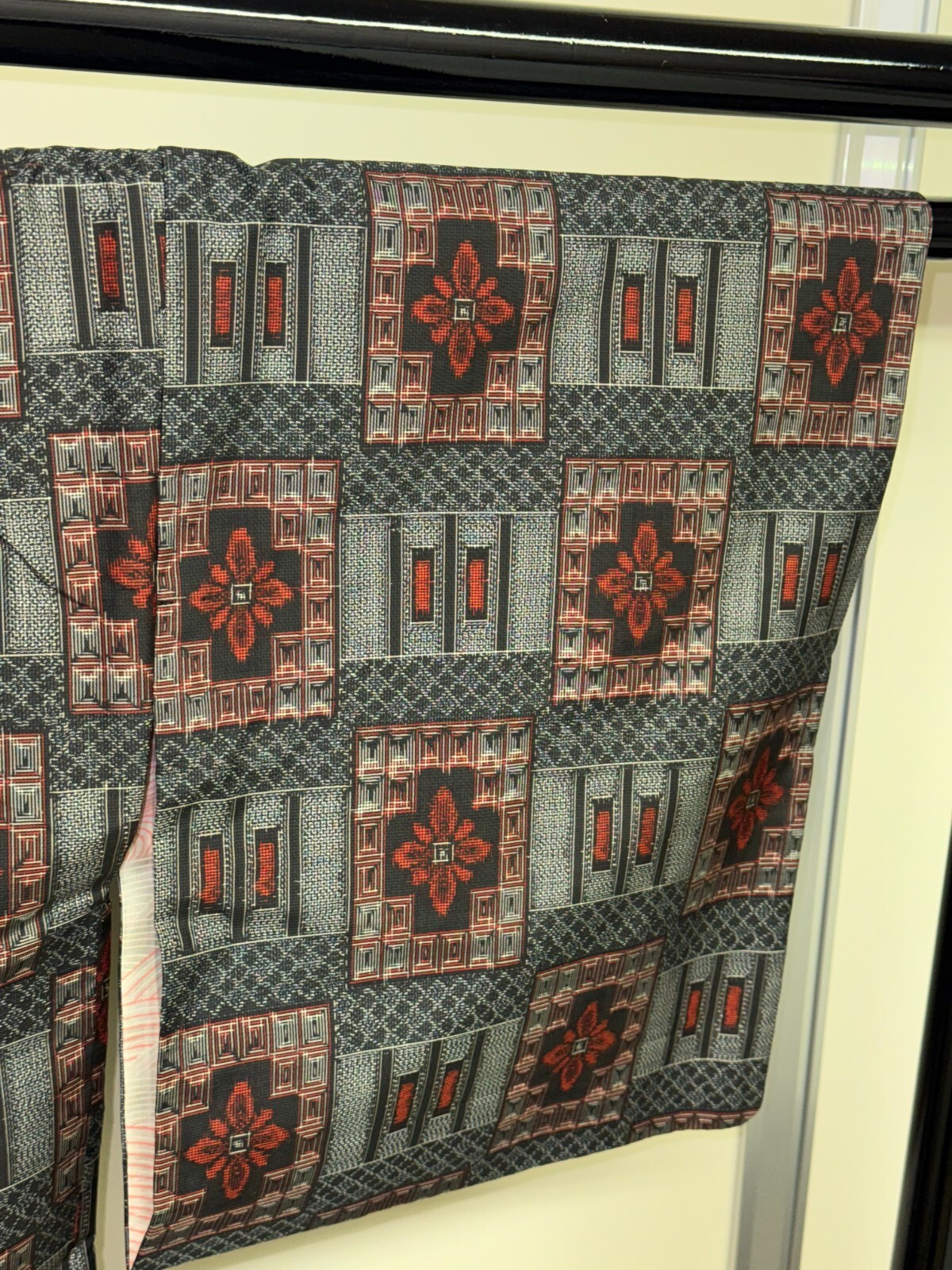 как выглядит Japanese Vintage Kimono Haori Jacket silk gray oshima tsumugi Height 33.85in фото