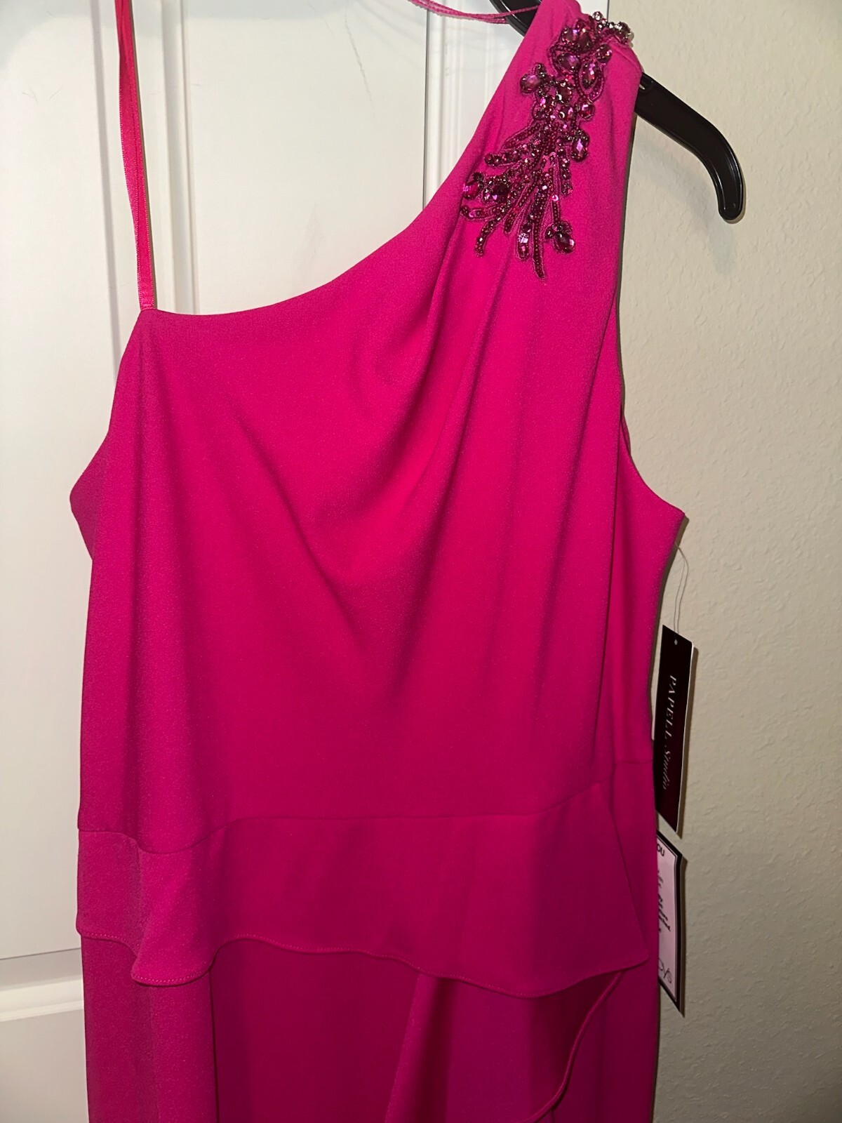 как выглядит Adrianna Papell Pink One Shoulder Gown 14 Stretch Crepe NWT Mother of Bride фото