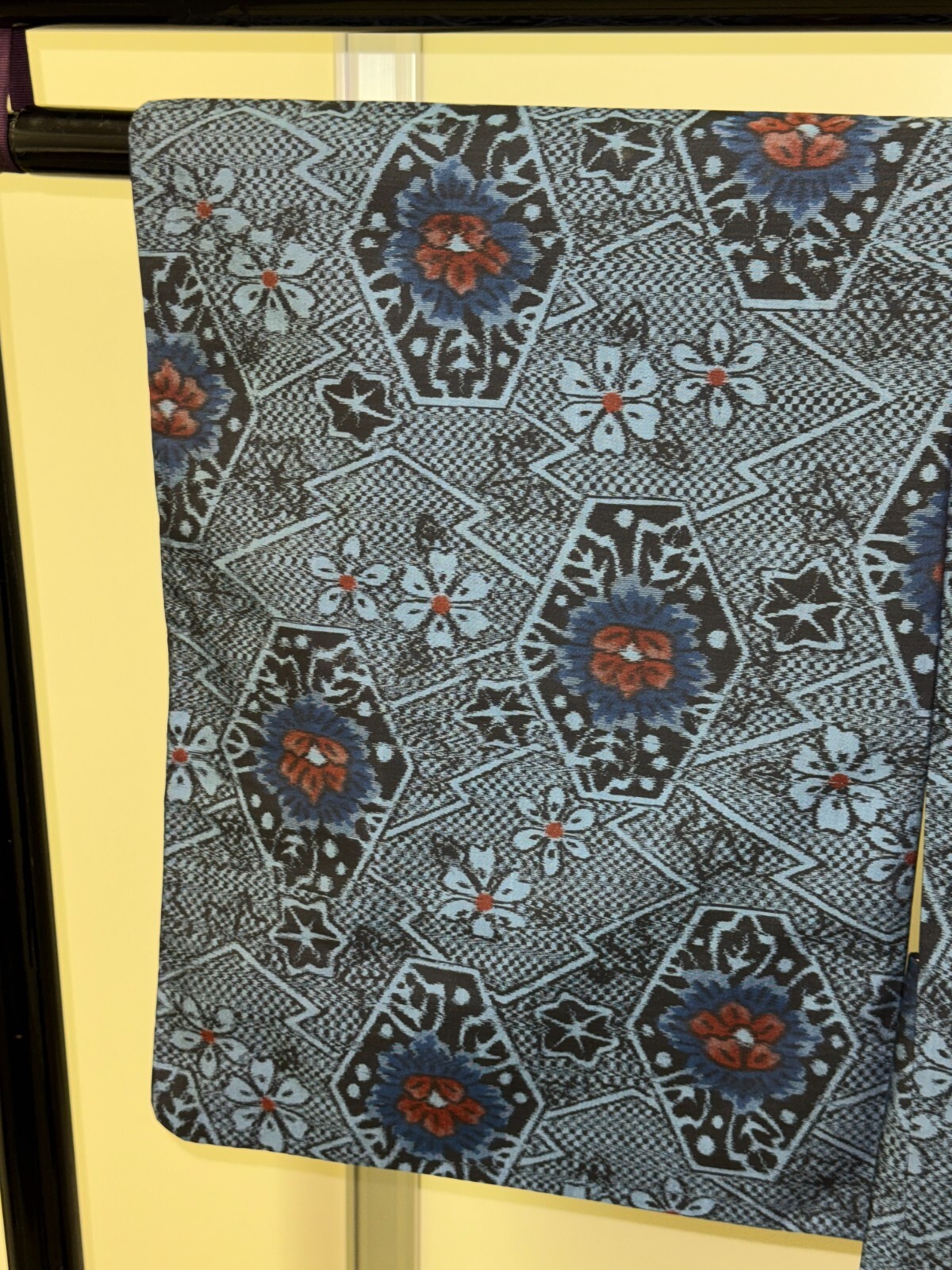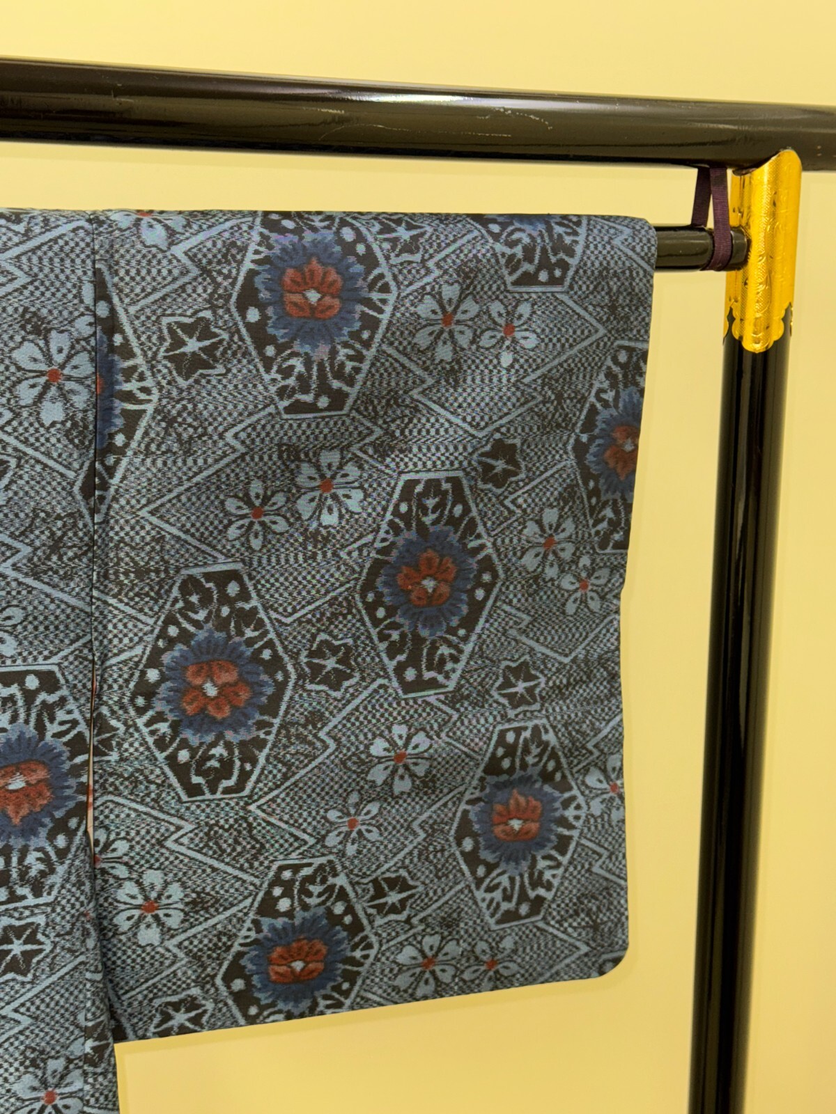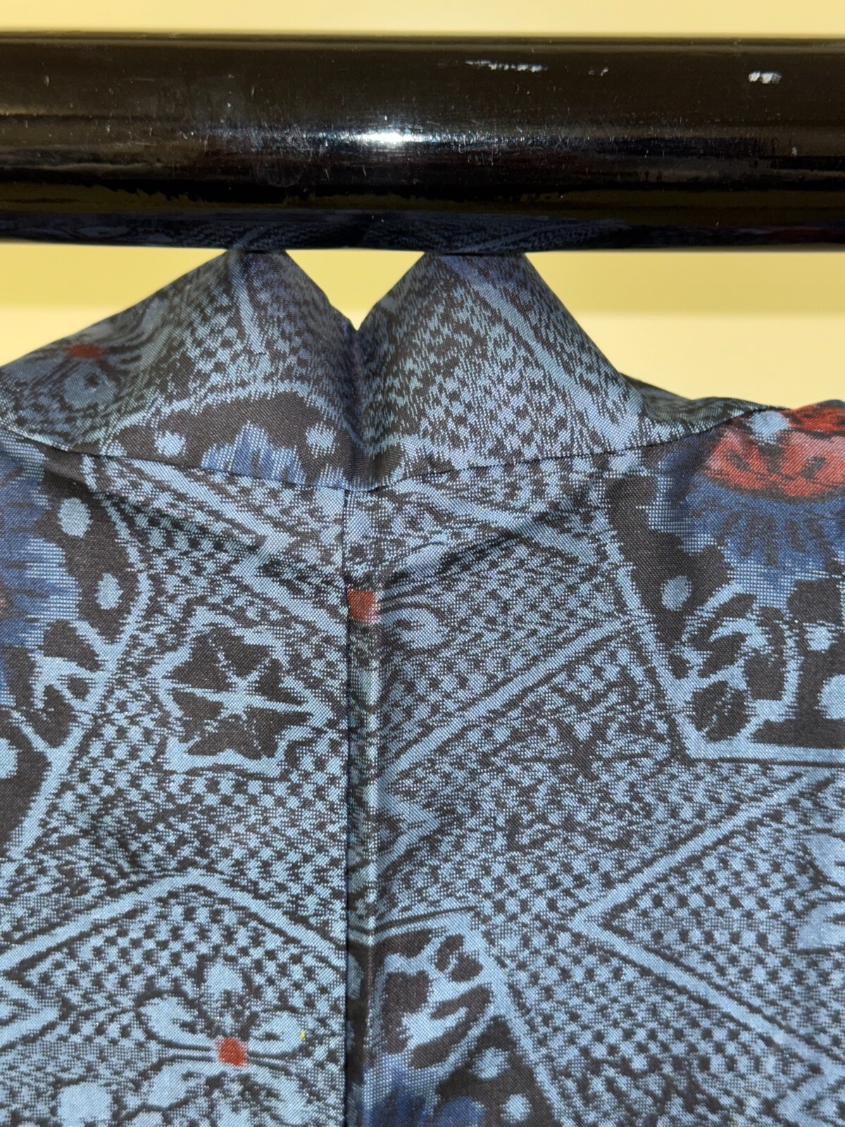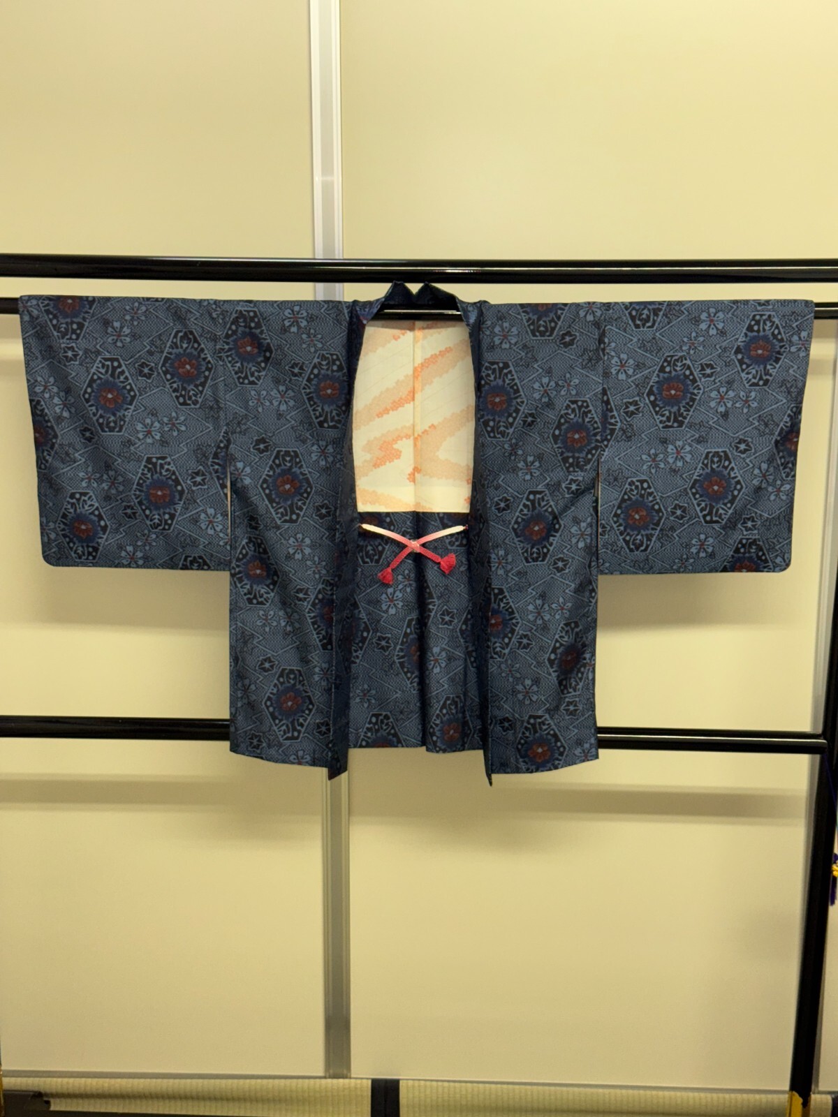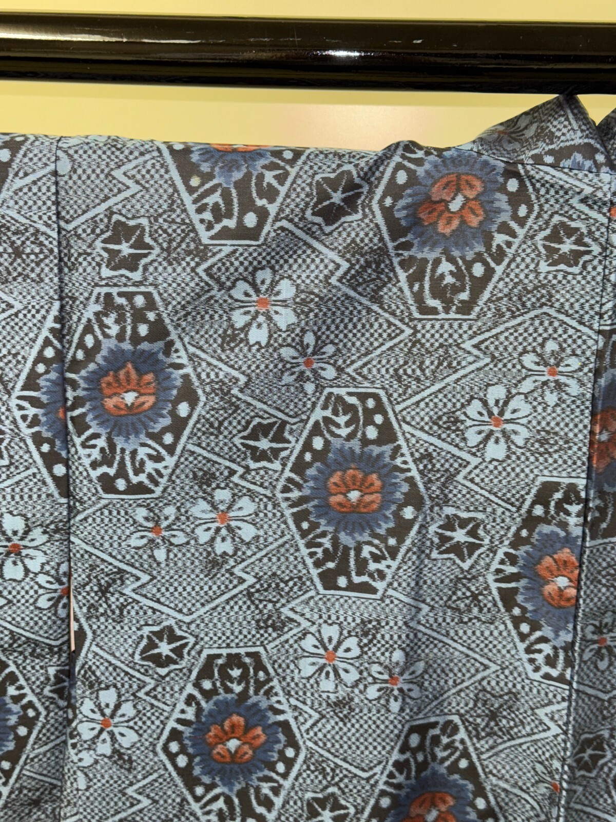 как выглядит Japanese Vintage Kimono Haori Jacket silk blue oshima tsumugi Height 31.49in фото