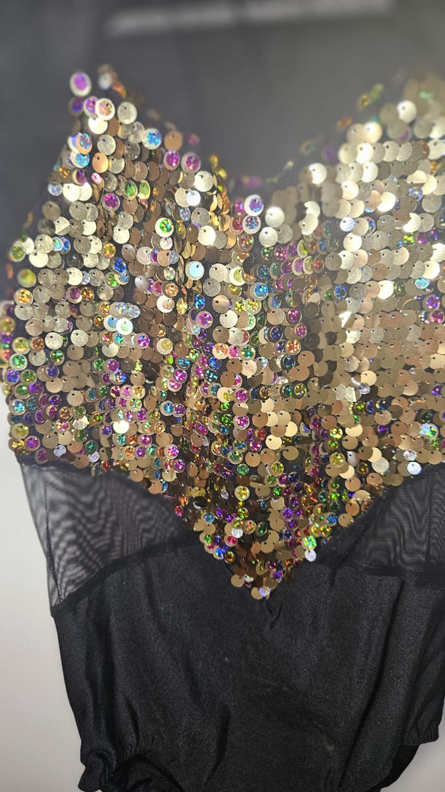 A Wish Come True 18878 Adult Small Black With Gold And Rainbow Sequin Costume